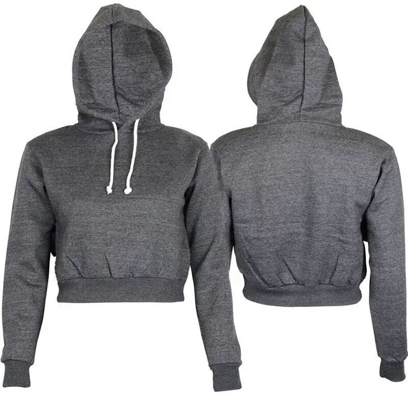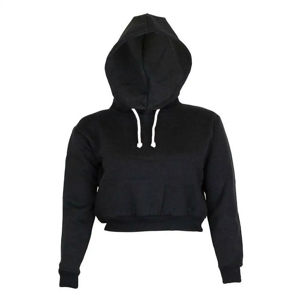 Новый женский модный однотонный укороченный топ с капюшоном и длинн...