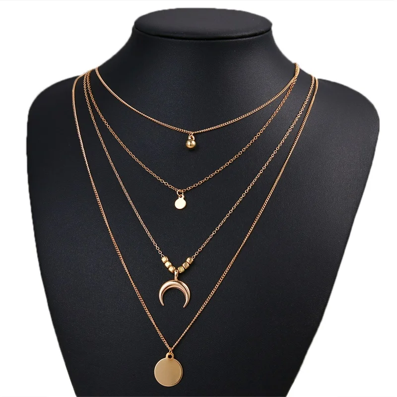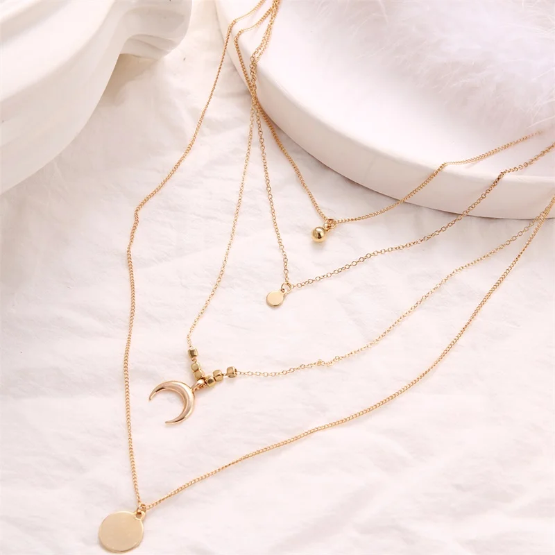 Богемная цепочка с Луной, сплав, цепочка для свитера, длинная ракушка, рогово-гребешок, подвеска, многослойное ожерелье, Женские Ювелирные изделия
