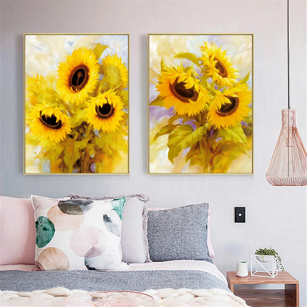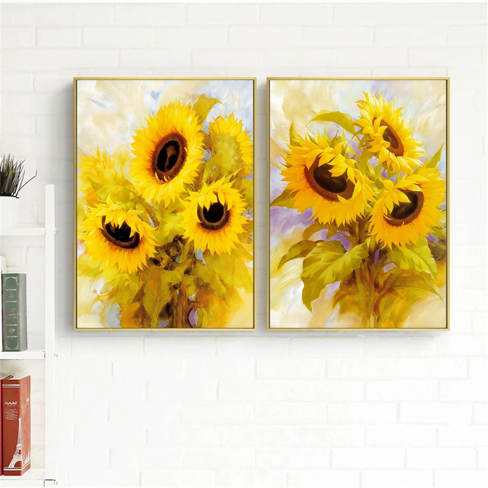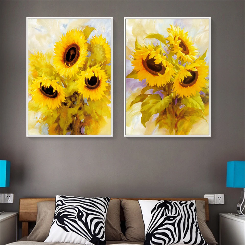 Картина маслом подсолнуха напечатанная на холсте картина для гостиной Декор абстрактные стены Искусство домашний Декор желтые цветы цветочный подарок