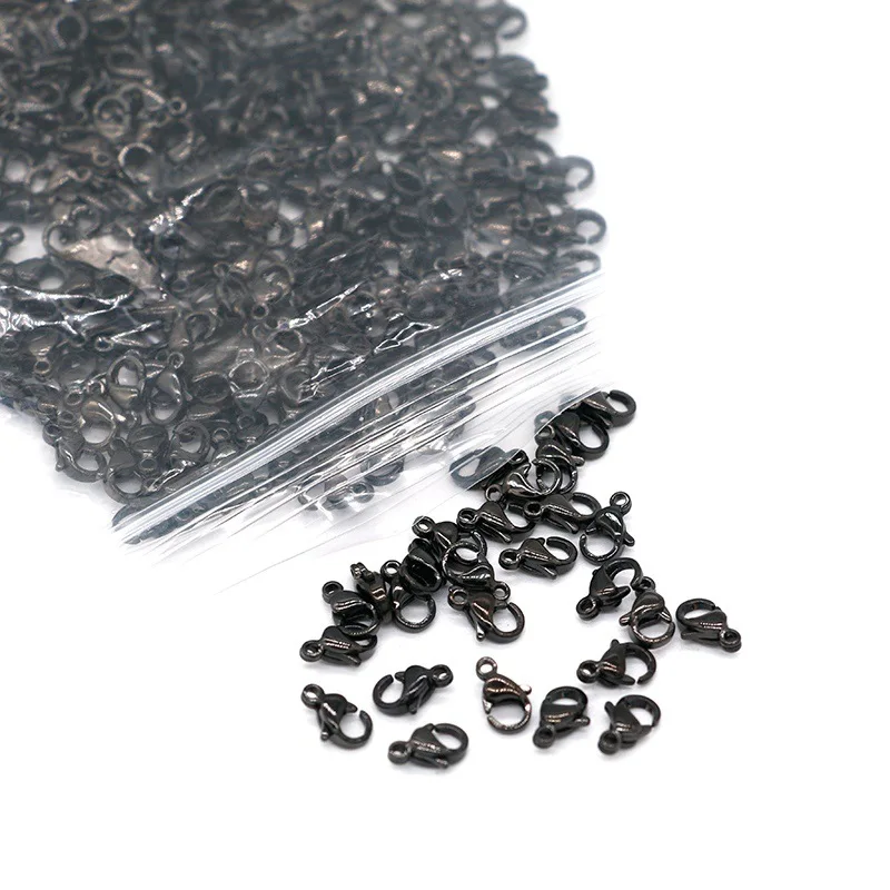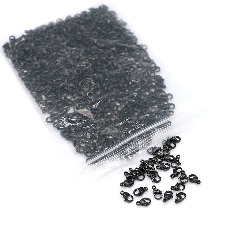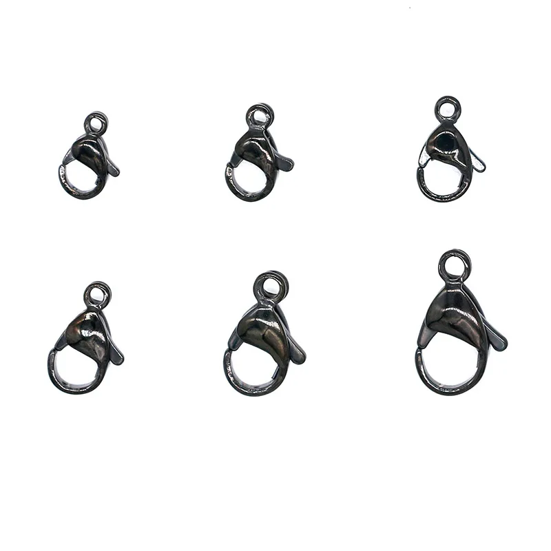 10 шт./лот, нержавеющая сталь, черный цвет, 9 10 11 12 13 15 мм, застежка-карабин, застежка, соединитель для браслетов «сделай сам», Ювелирная фурнитура