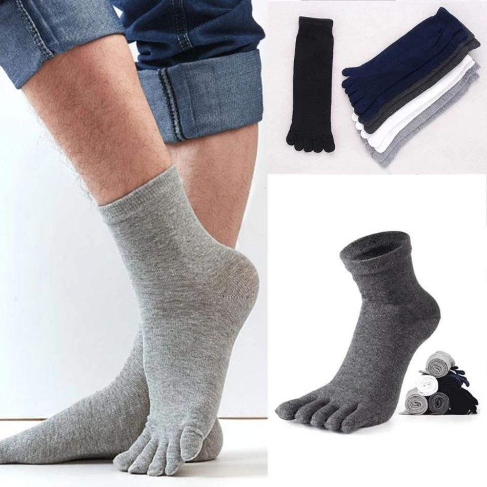 Мужские носки CXZD с пятью пальцами, мягкие, из полиэстера и хлопка, до лодыжки, однотонные, дышащие, удобные, подходят для размеров ног 38-43