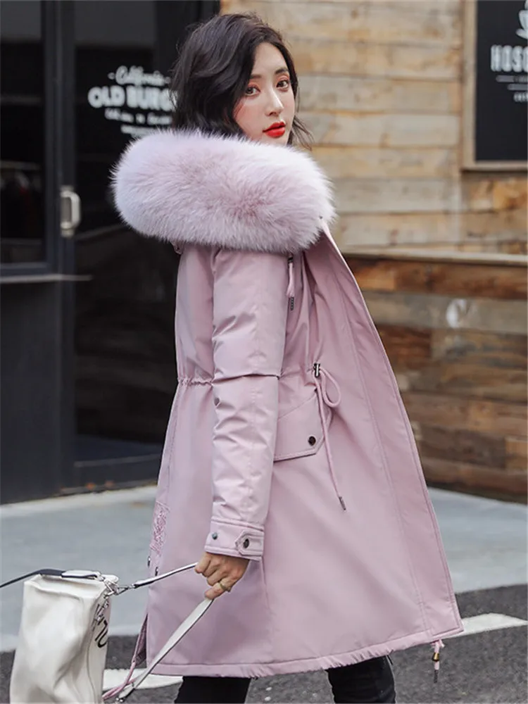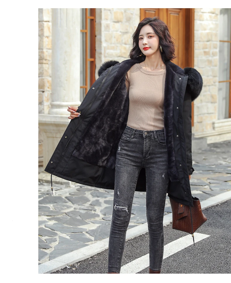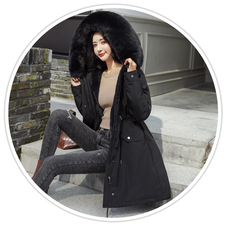 Пальто женское длинное осенне-зимнее из искусственного меха, с большими карманами