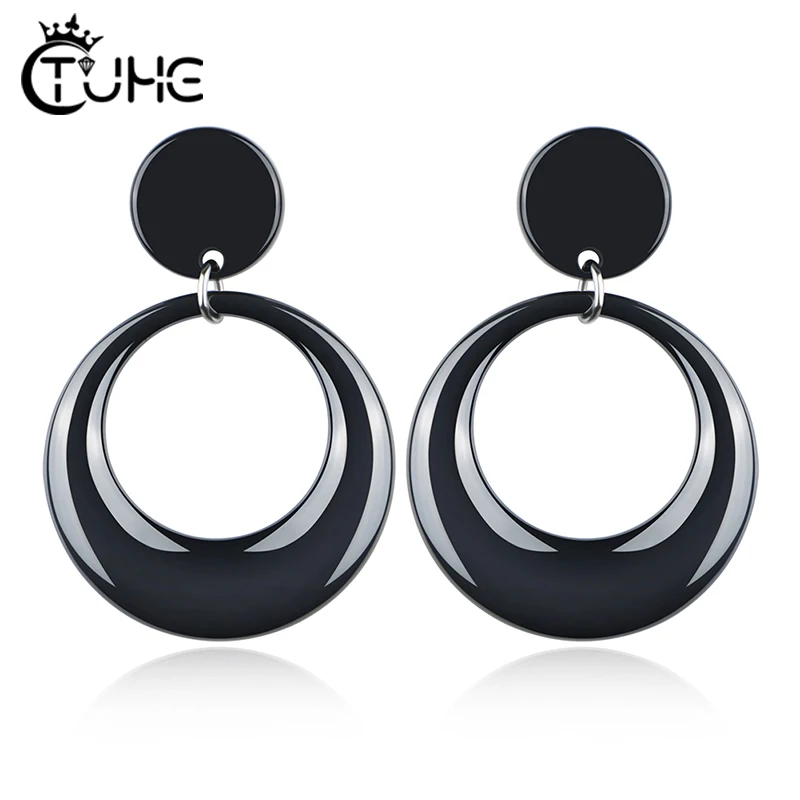 Женские большие серьги в стиле панк, винтажные геометрические черные керамические серьги для свадебной вечеринки, богемная бижутерия