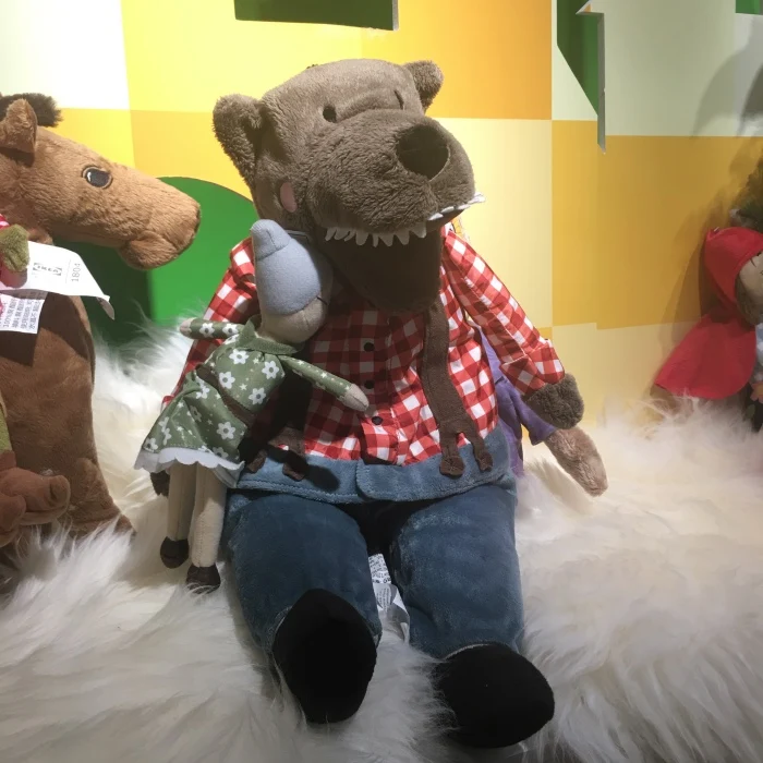 Пришёл волк с бабушкой. Выставила фото только бабушки, потому что дети уже уложили волка спать))) не могу найти где. Волк в точности как на картинке, с ярлыком из Икея. Посылка в Московскую область пришла за 3 недели, трек отслеживался. Рекомендую тут заказывать