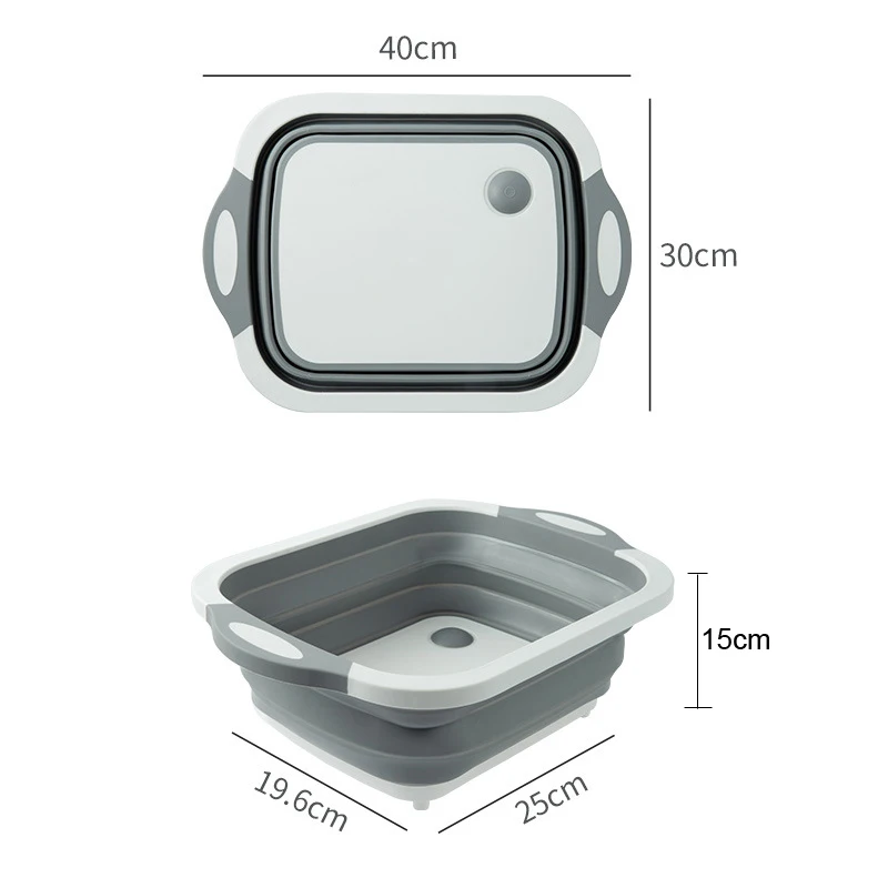 Простота использования-можно использовать как разделочную доску после складывания или мытья овощей, а также сливную корзину после открытия. Встроенная пробка и слив, просто поверните пробку для слива воды.