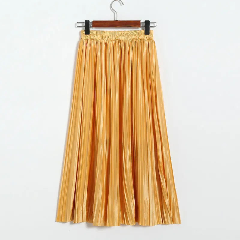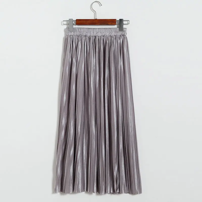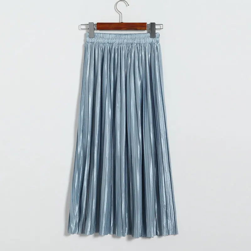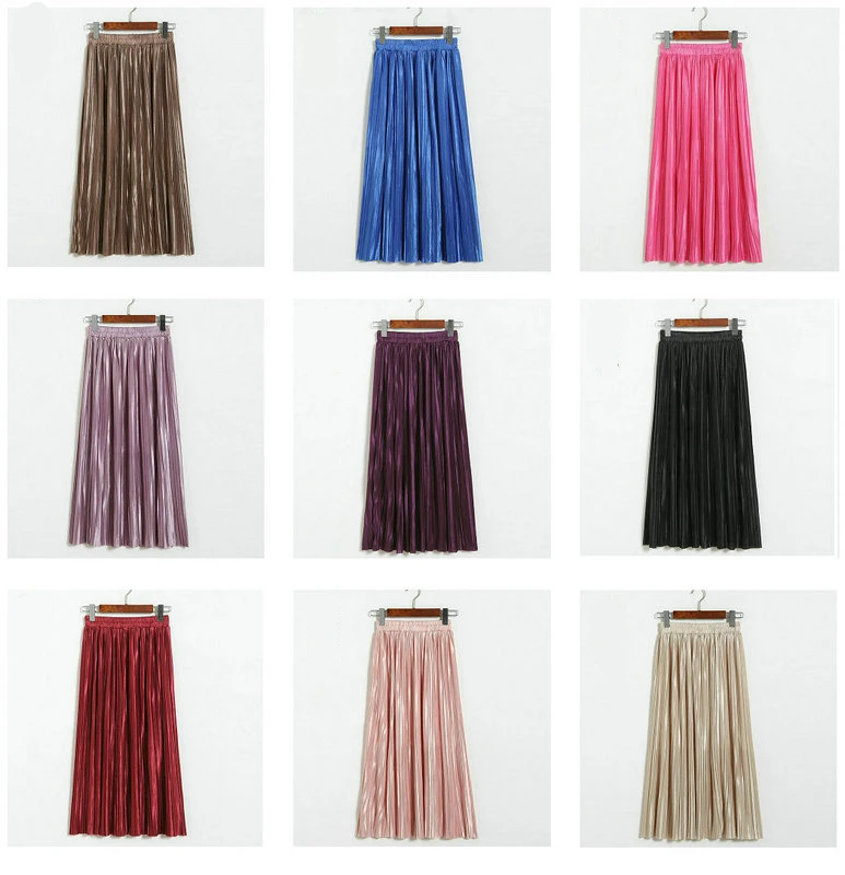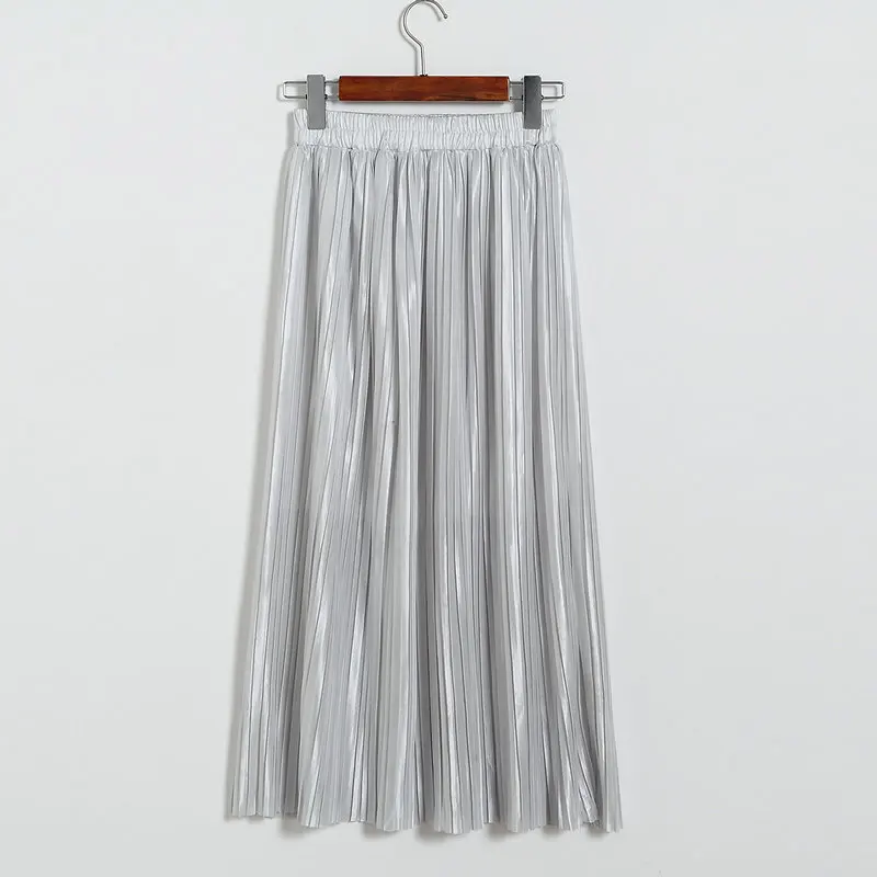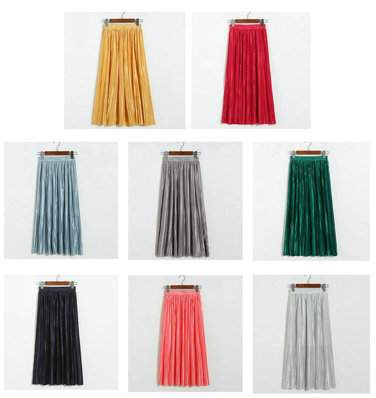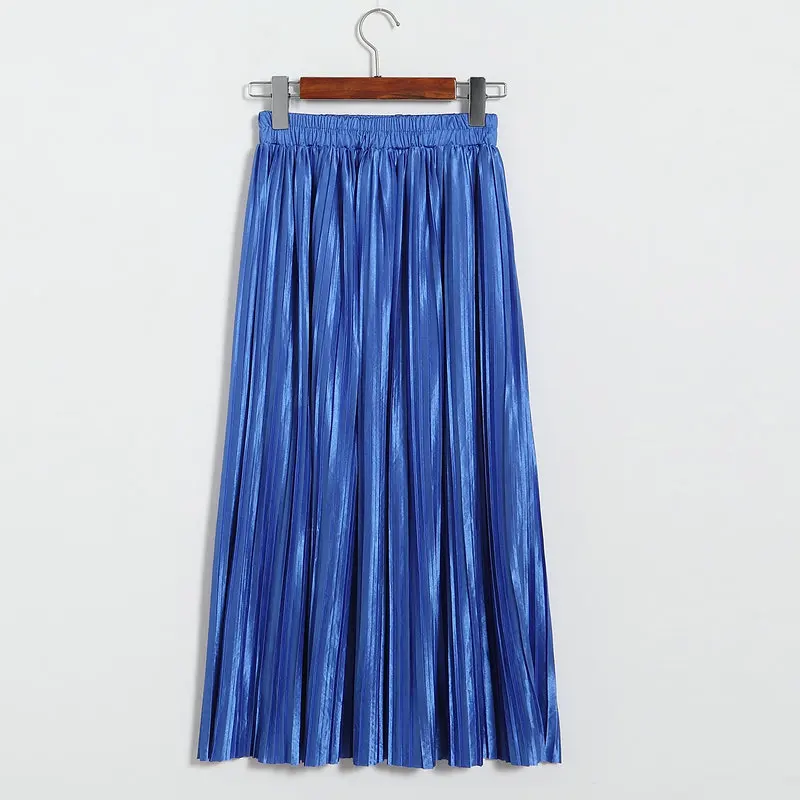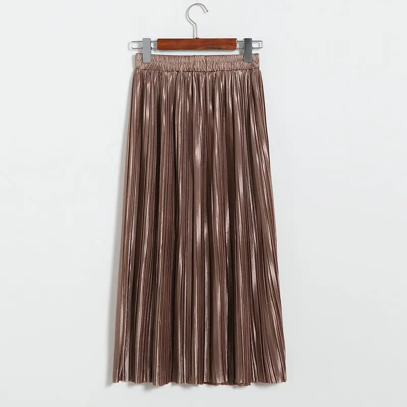 Женская плиссированная юбка средней длины с высокой талией и блестками