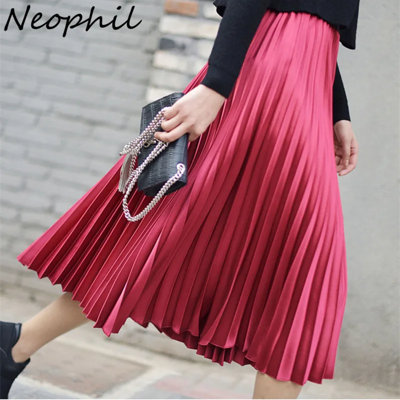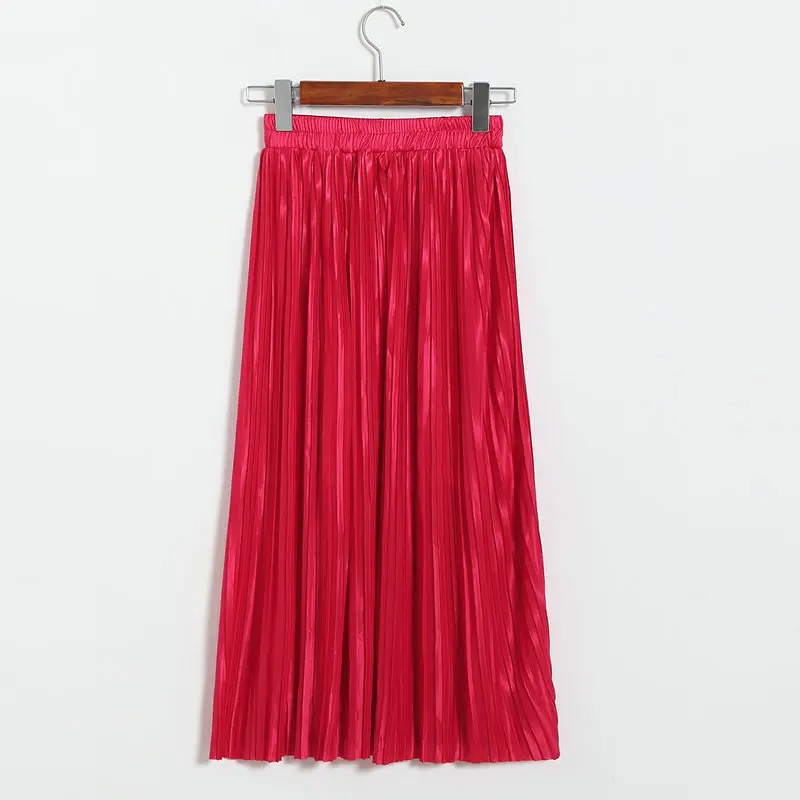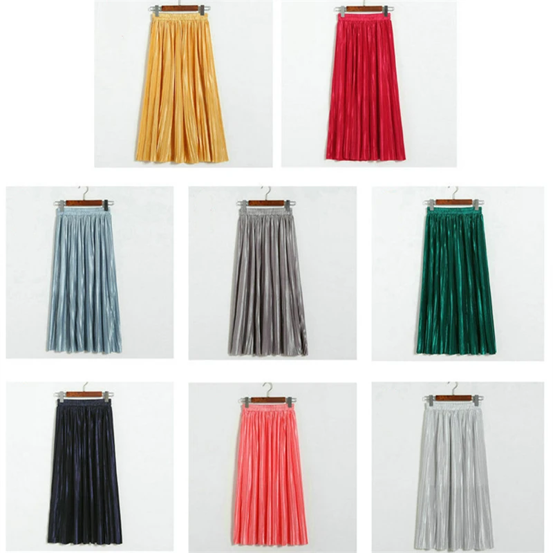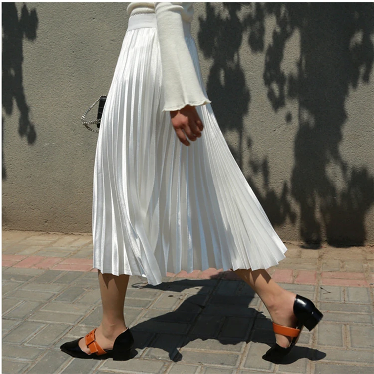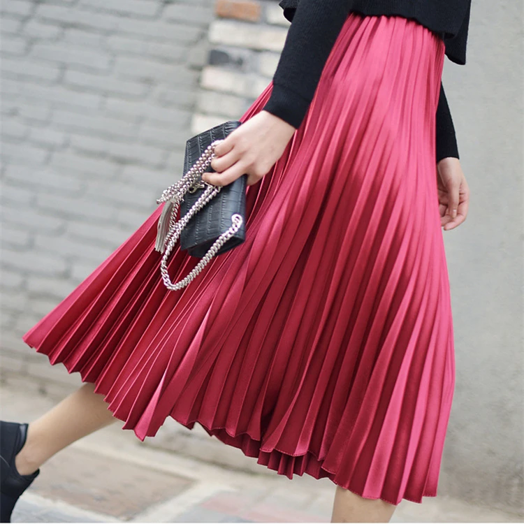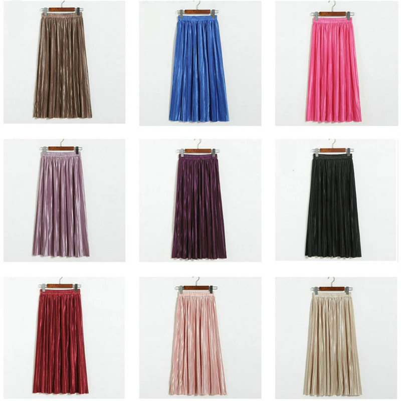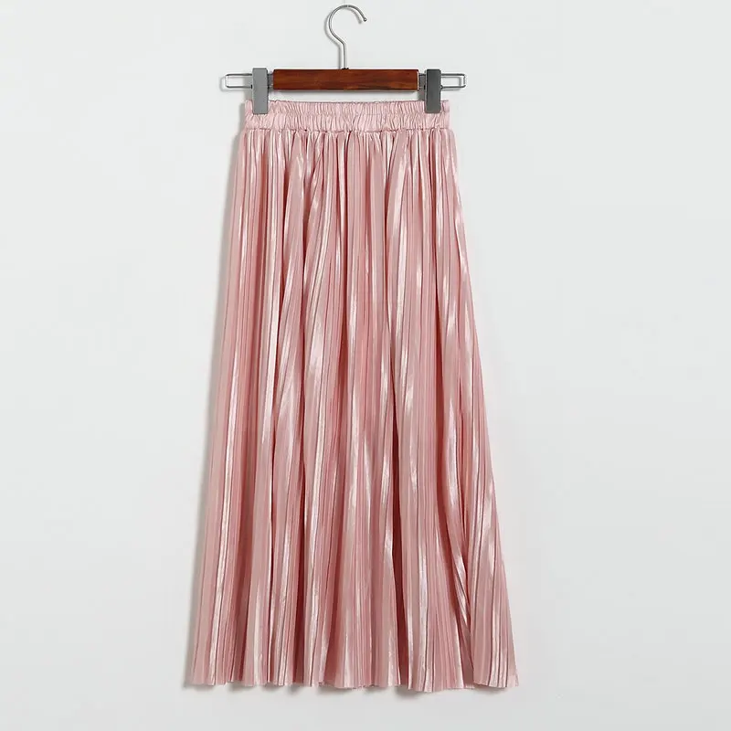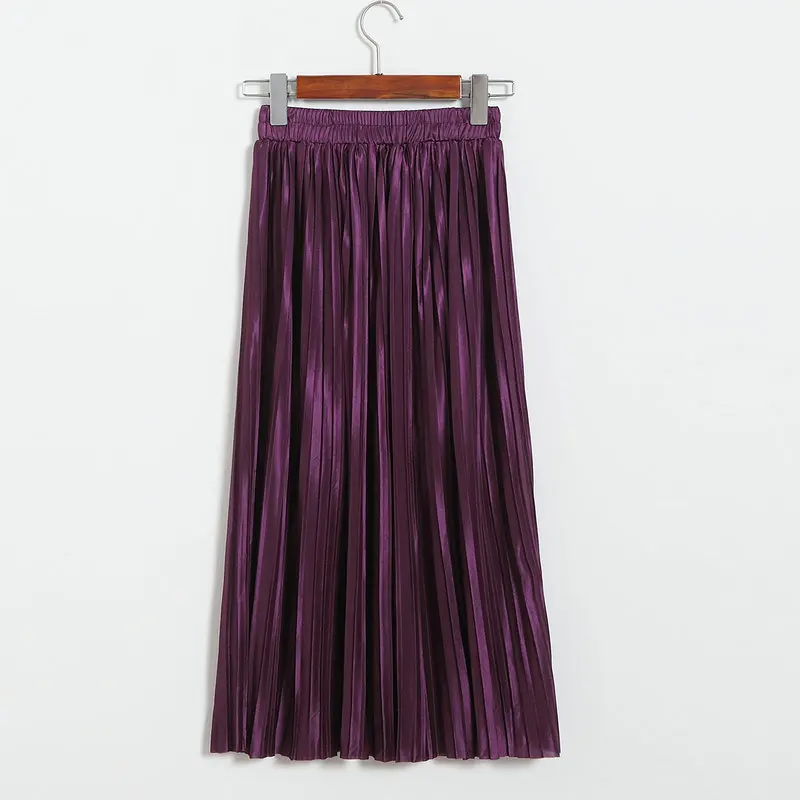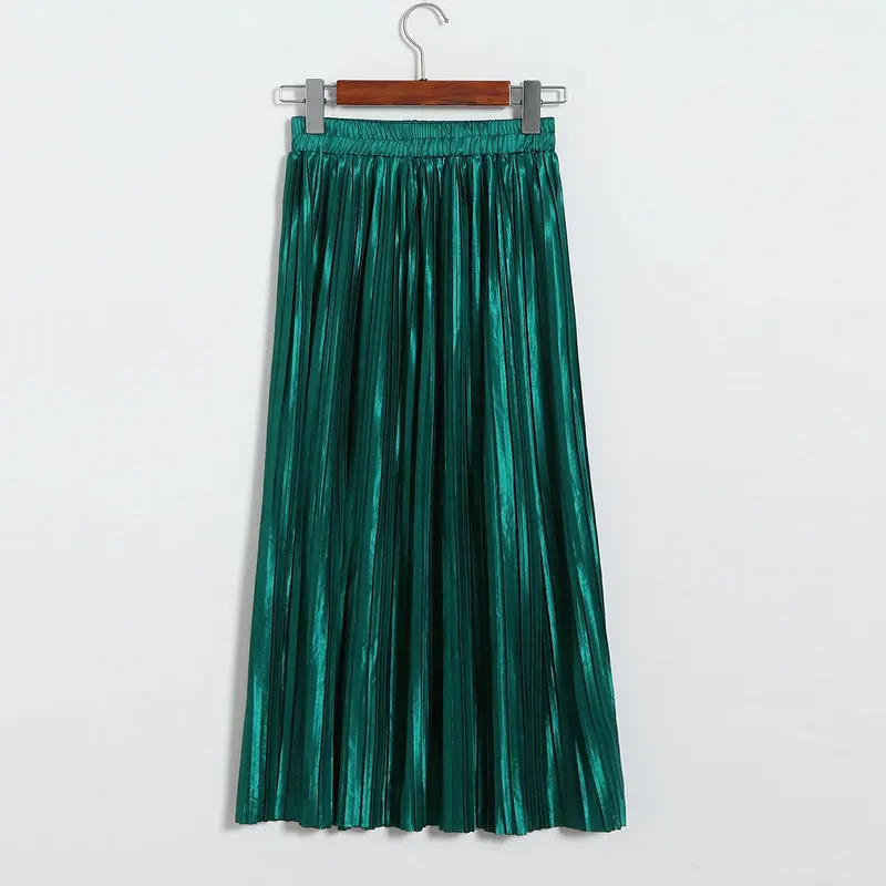 Женская плиссированная юбка средней длины с высокой талией и блестками