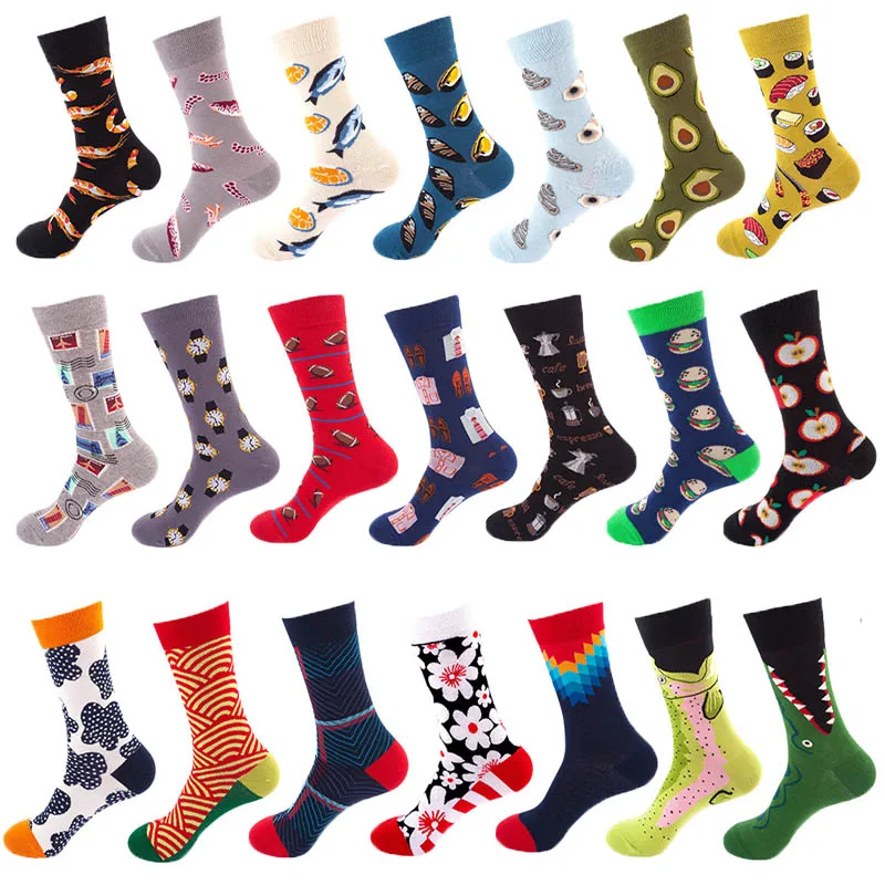 Харадзюку, мужские Разноцветные носки, цветные, веселые, еда, авокадо, бургер, повседневные хлопковые носки, подходят для свадьбы, мужские подарочные носки