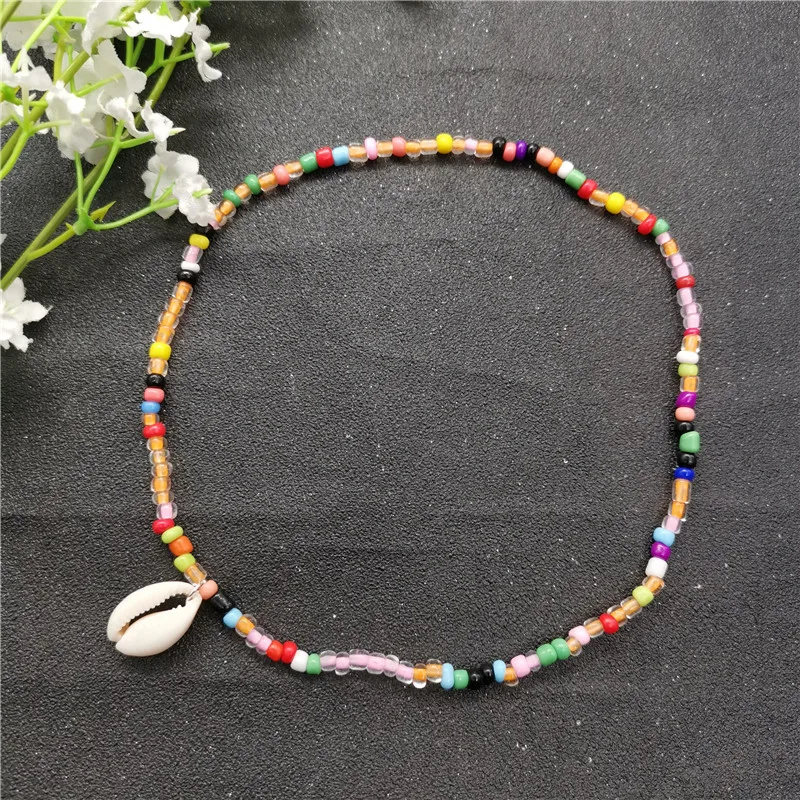 JCYMONG новое ожерелье-чокер с эластичной линией для женщин ожерелье с разноцветными бусинами 4 мм 2019 богемное ожерелье с подвеской из натуральной ракушки
