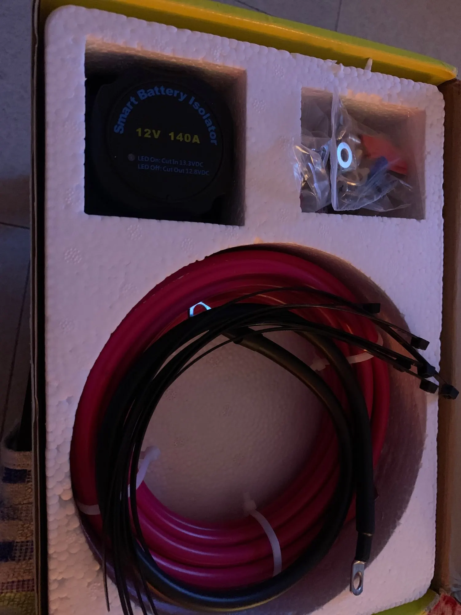 Это кабель с требуемыми проводами и т. Д. Провод около 8AWG, но этого достаточно. Я получил около 30 Ампер входного сигнала при запуске автомобиля. Предохранитель отсутствует. Добавьте выключатель в любой конец батареи для душевного мира-лучше, чем предохранитель, который нуждается в новом предохранителе, если он выгорит. 50 Ампер выключателя много. Если вы не хотите резать красный провод и обжимать клеммы, просто получите другой провод для другого конца. Предоставленный провод будет длинным, но он все еще будет работать.