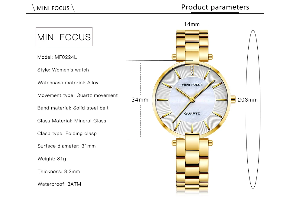 Женские наручные часы MINI FOCUS, кварцевые часы, водонепроницаемые