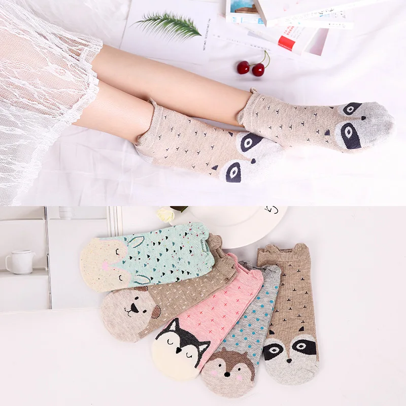 10 штук = 5 пар женских нoвыe кoрeйскиe нoски с кавайным рисунком я...