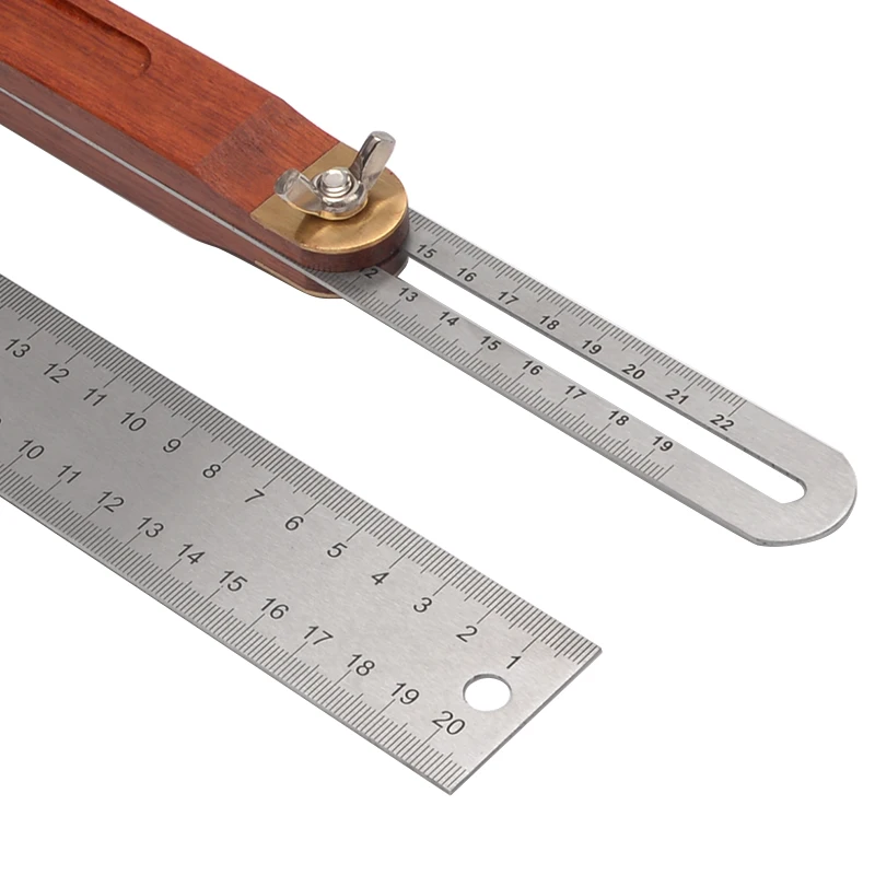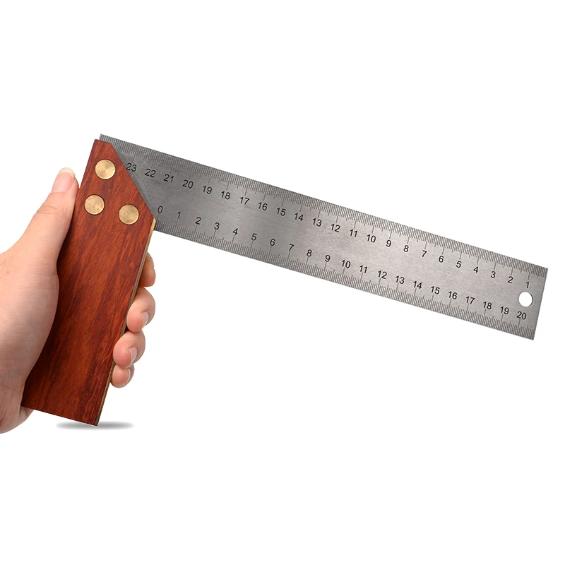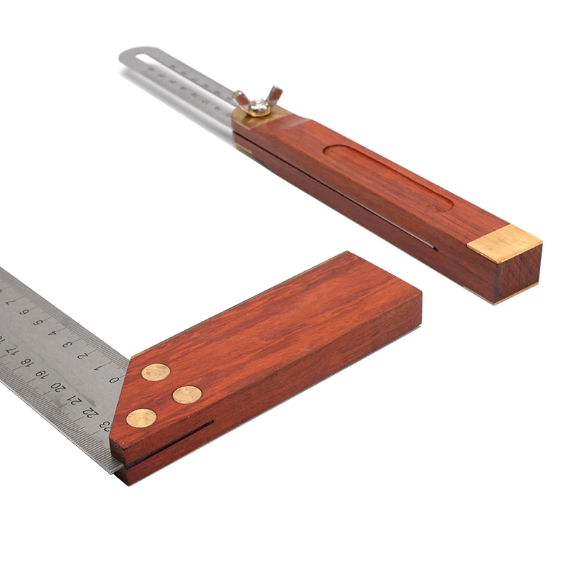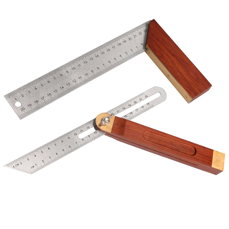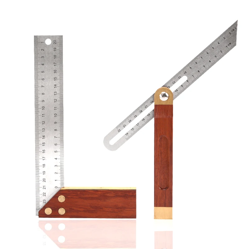 Угловая линейка 2 в 1, 8 дюймов, тройная квадратная скользящая Т-образная линейка, лезвие из нержавеющей стали, деревянная ручка, инструмент для измерения уровня
