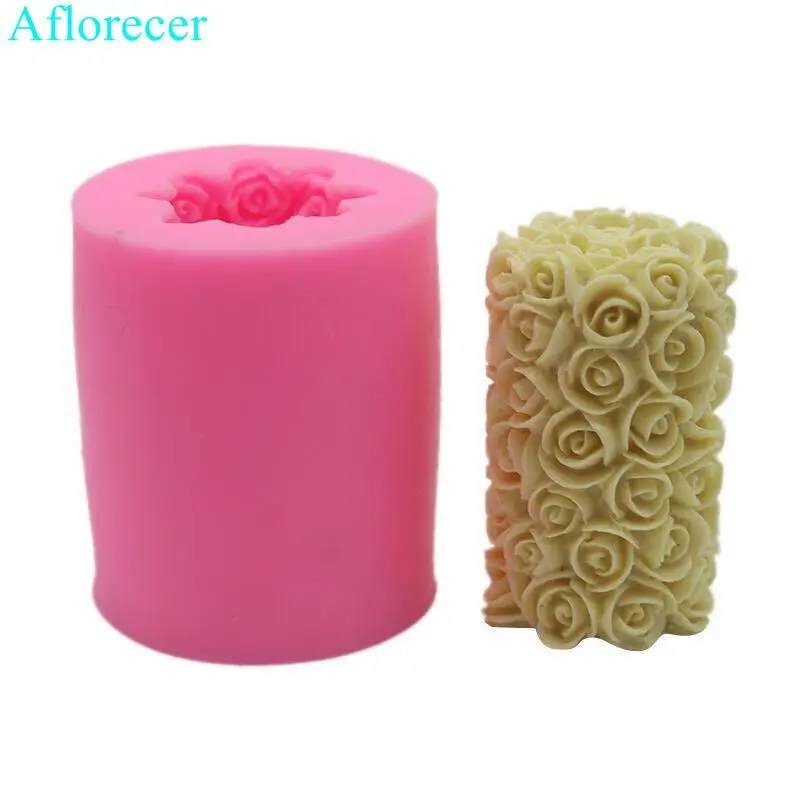 3D Свеча цветок розы силиконовая форма DIY гипс гипсовая форма цилиндрическая форма Силиконовое мыло формы для свечей