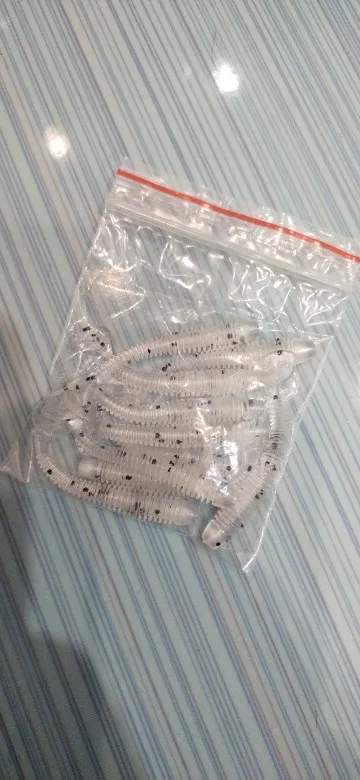 Продавец молодец, товар отправил на следующий день. Приманки хорошего качества, без атрактанта,обработаны просто силиконом,присутствует не сильный запах резины. Приманки уже разловил окунь на них клюёт хорошо.
