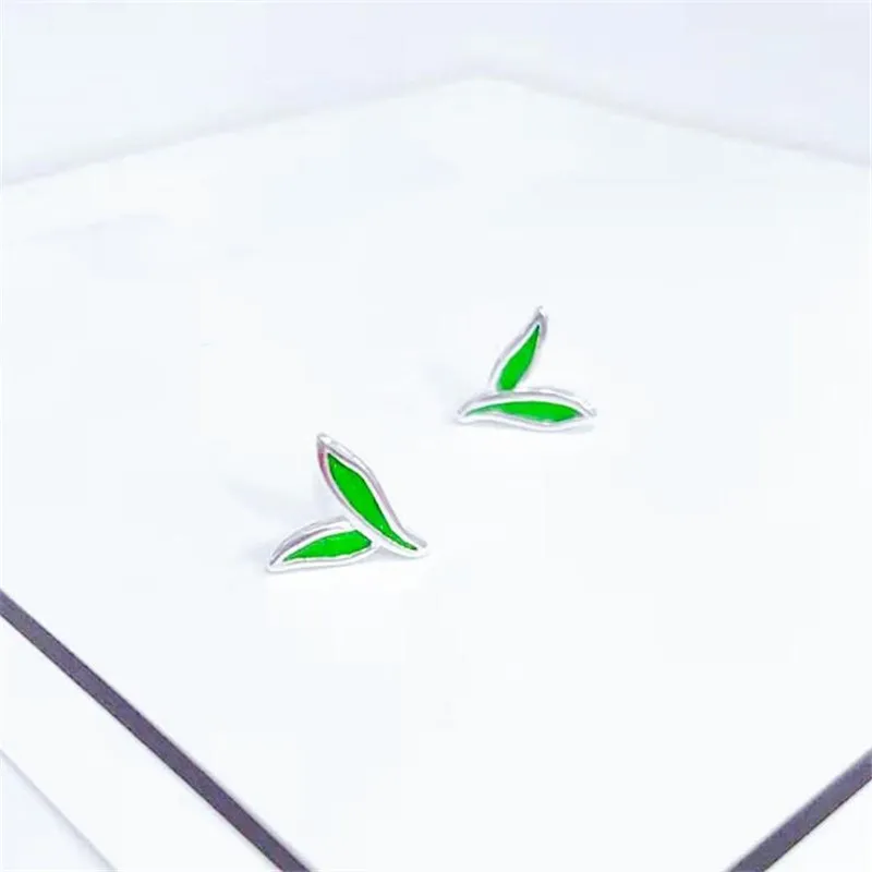 Новые корейские Стильные Простые Модные креативные серьги-гвоздики из стерлингового серебра 925 пробы с двумя маленькими листьями SE907