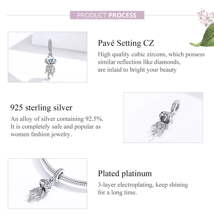 Bamoer подводный мир серия Медуза Подвеска для браслета ожерелье подлинное серебро 925 пробы DIY Ювелирные изделия SCC1297