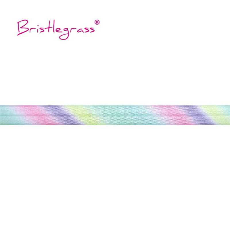 Блестящая трава 2 5 10 ярдов 5/8 "15 мм пастельный Радужный принт FOE Fold Over Elastics спандекс атласные ленты для волос повязка на голову швейная отделка
