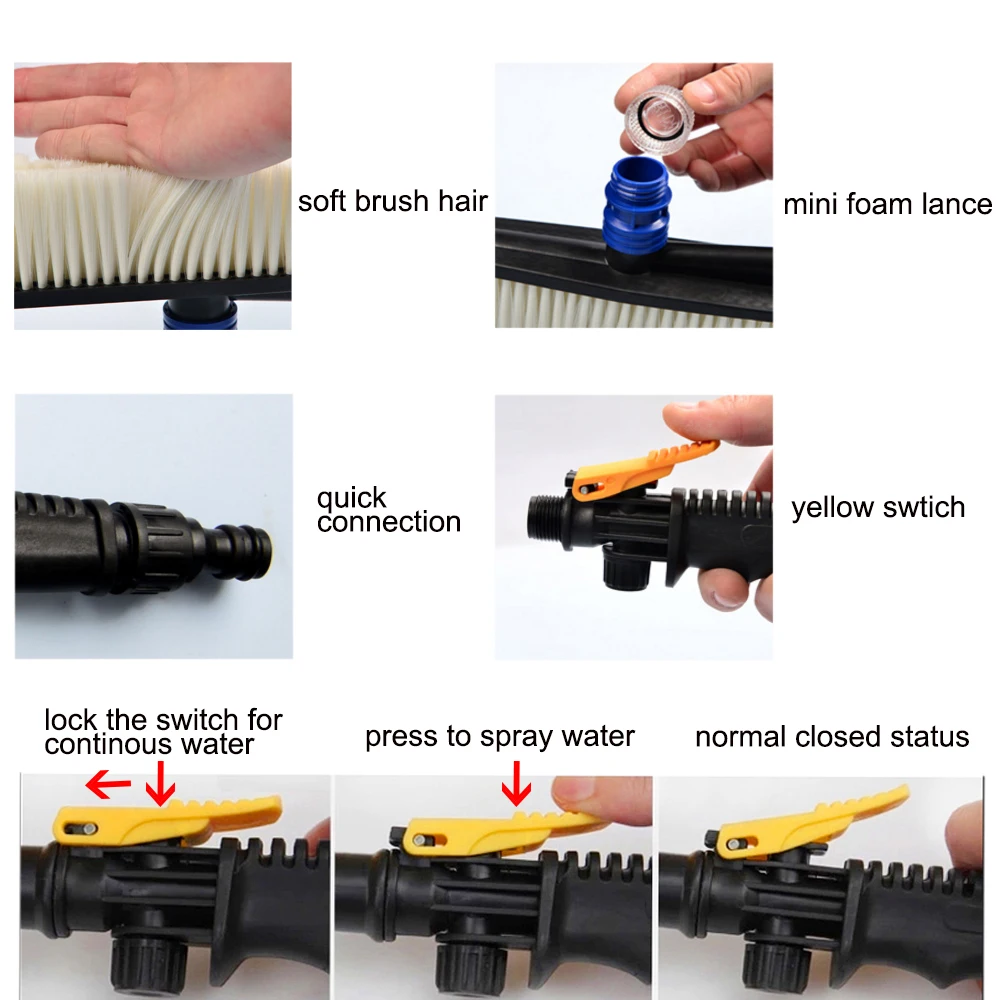 Щетка для автомойки, щетка с длинной ручкой для очистки автомобиля, переключатель расхода воды, мини пенная насадка для очистки шин, техническое обслуживание