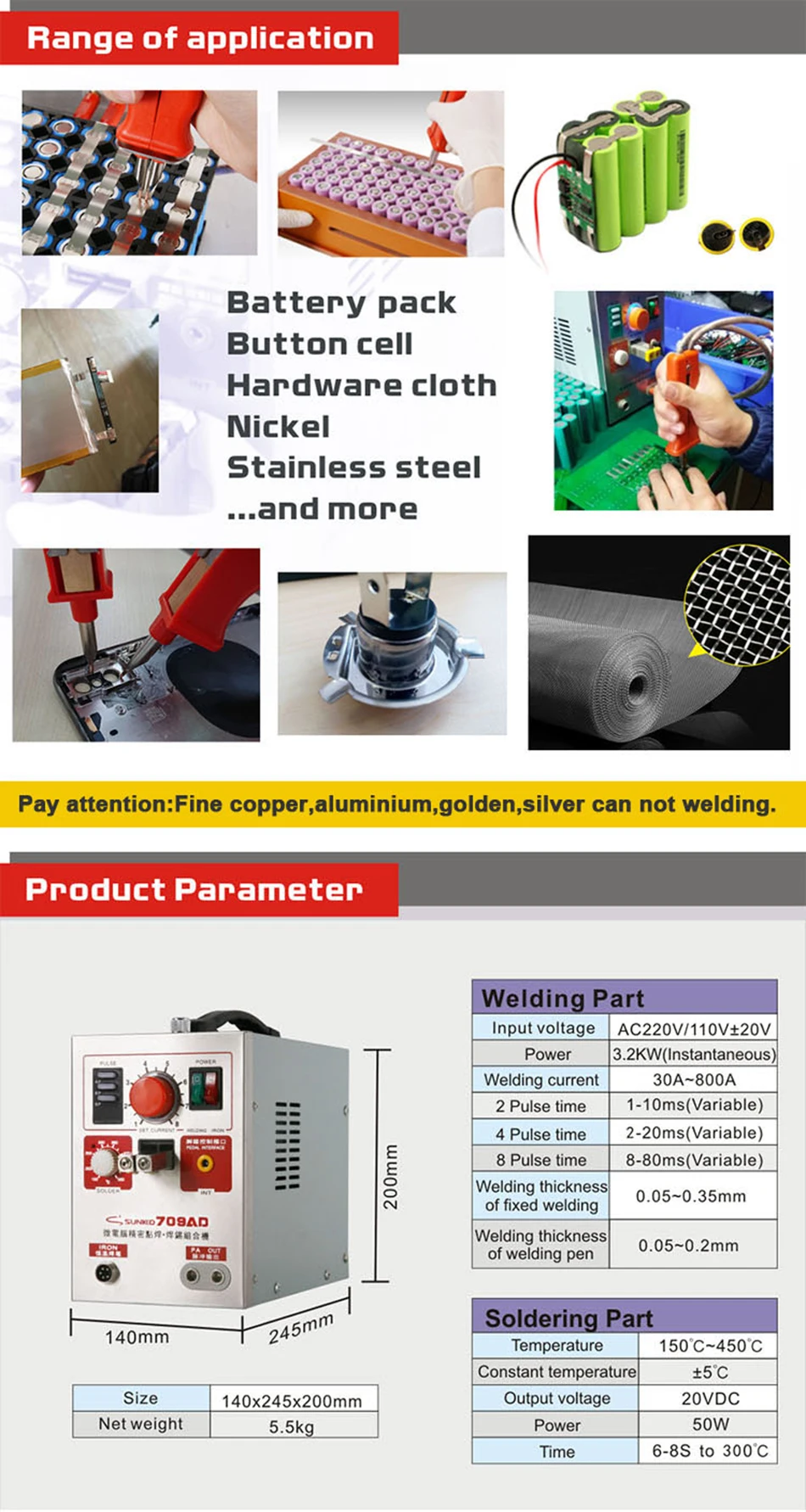 Аппарат для сварки SUNKKO 709AD 18650, мини-станок для сварки верхней и нижней полосы из нержавеющей стали и никеля