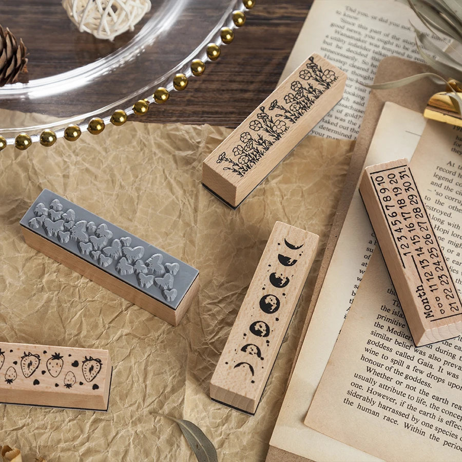 Винтажный деревянный прорезиненный штамп Луна, планета, месяц, календарь, штамп сделай сам для скрапбукинга, канцелярские принадлежности, стандартный штамп для скрапбукинга