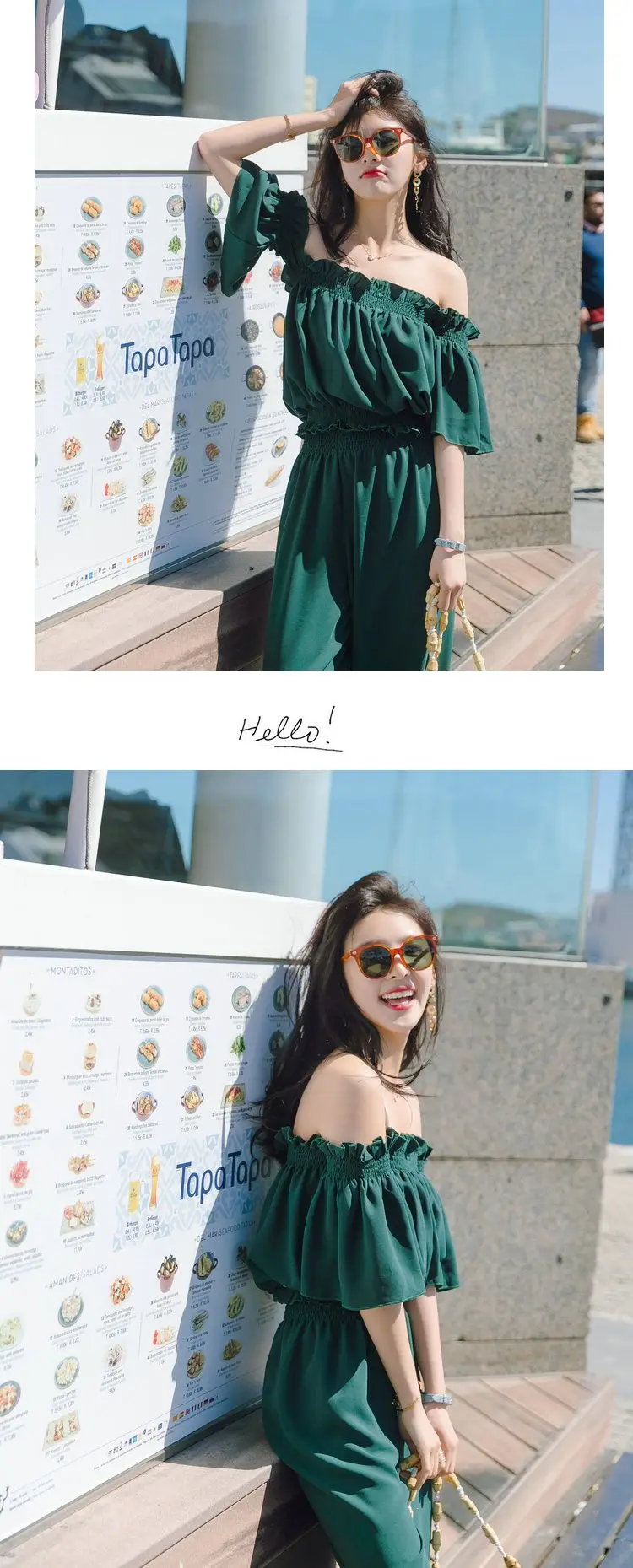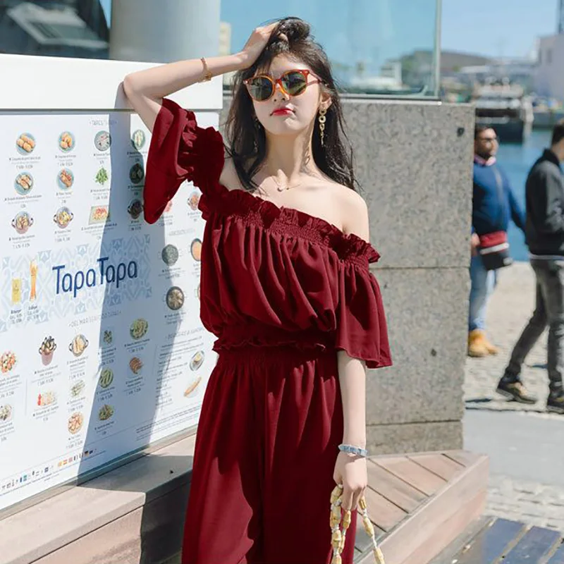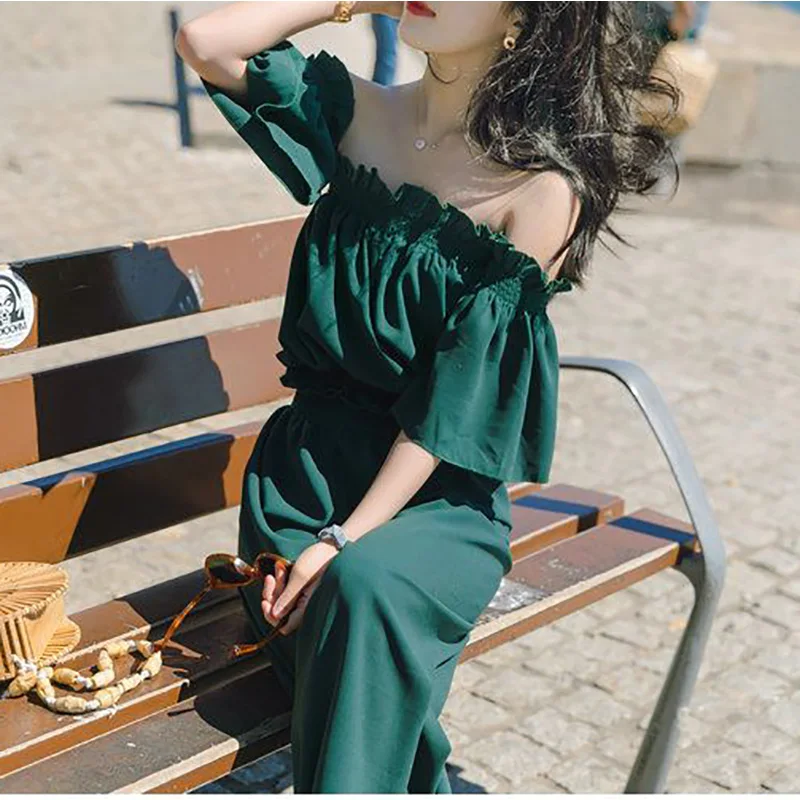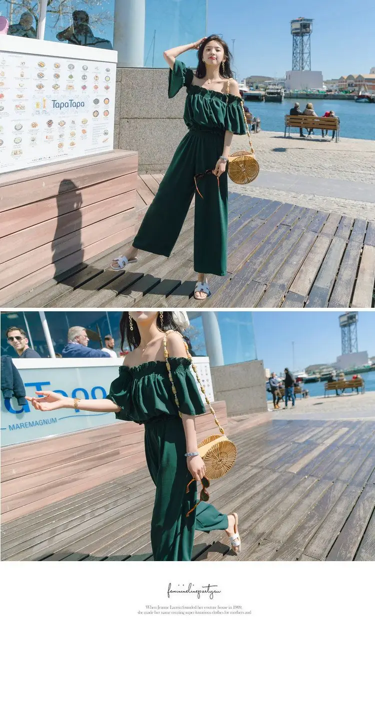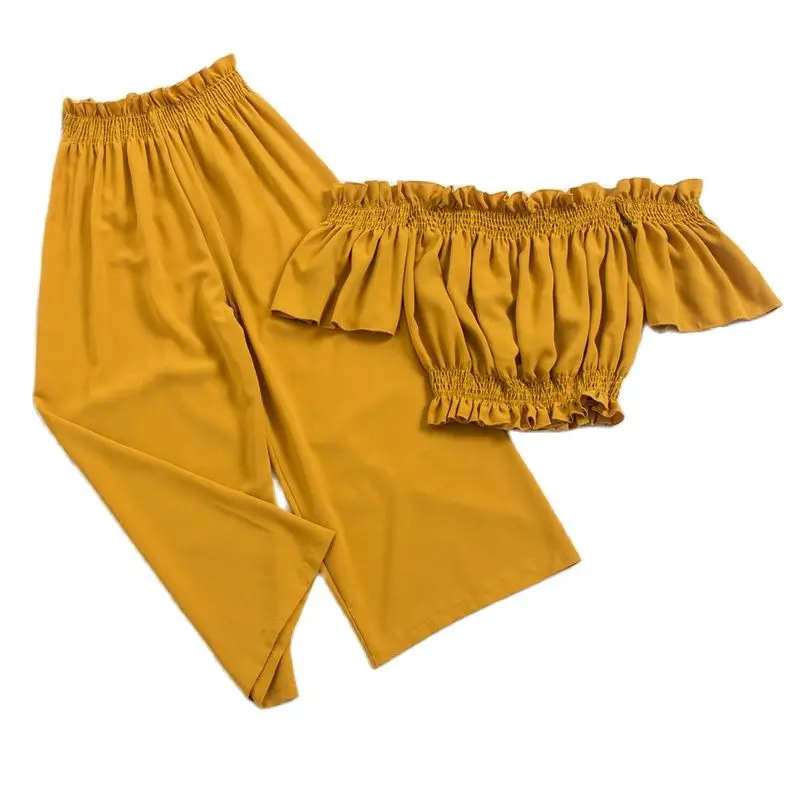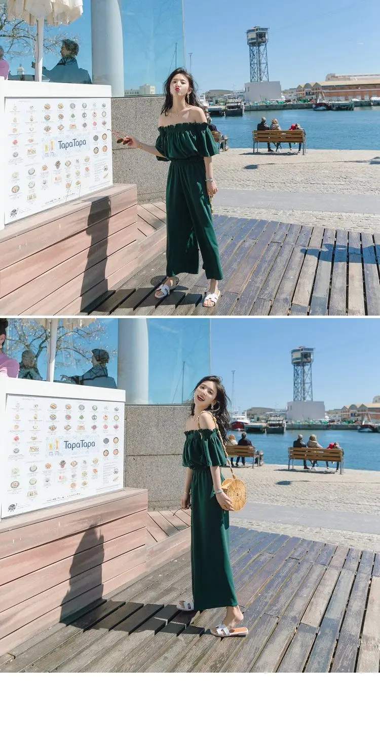 Женский комбинезон с открытыми плечами Heliar, комплект из двух предметов, вечерний комбинезон с рюшами на бретелях, лето 2020