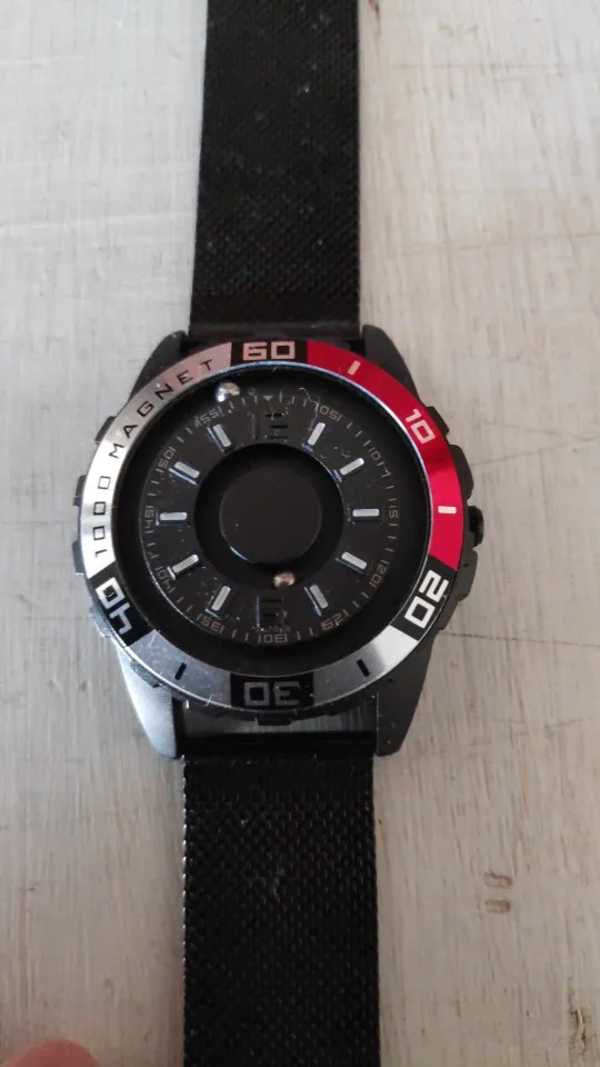 Здравствуйте, привет, Я не вижу, и концепция магнитного часов действительно очень заметна для меня, к сожалению, что касается меня, эти спортивные часы имеют дефект: на самом деле, шарик минут (Поэтому самый большой в центре) слишком мал и остается застрявшим под Металлическим кругом, Что делает его невозможным на ощупь, и поэтому я не могу прочитать время... это действительно позор, потому что это красивый продукт, и иметь оба шара внутри (а не снаружи) это хорошая идея, и это могло бы быть действительно практичным, если бы последние вышли достаточно. С уважением, с уважением