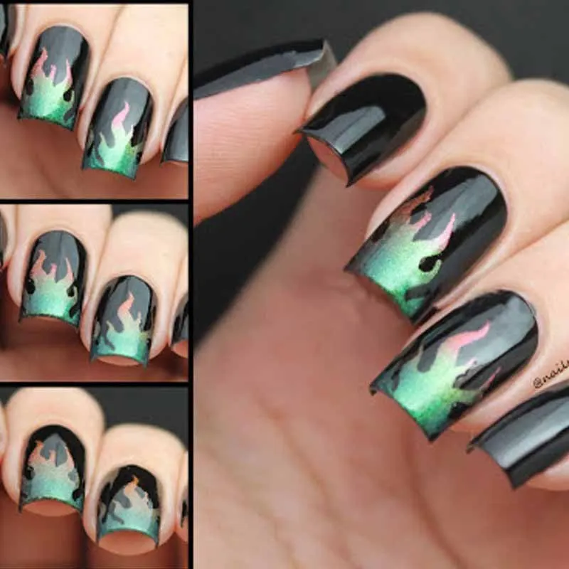 Разноцветные огненные узоры, полые наклейки для ногтей для салона, 3D искусство ногтей, наклейки для дизайна ногтей