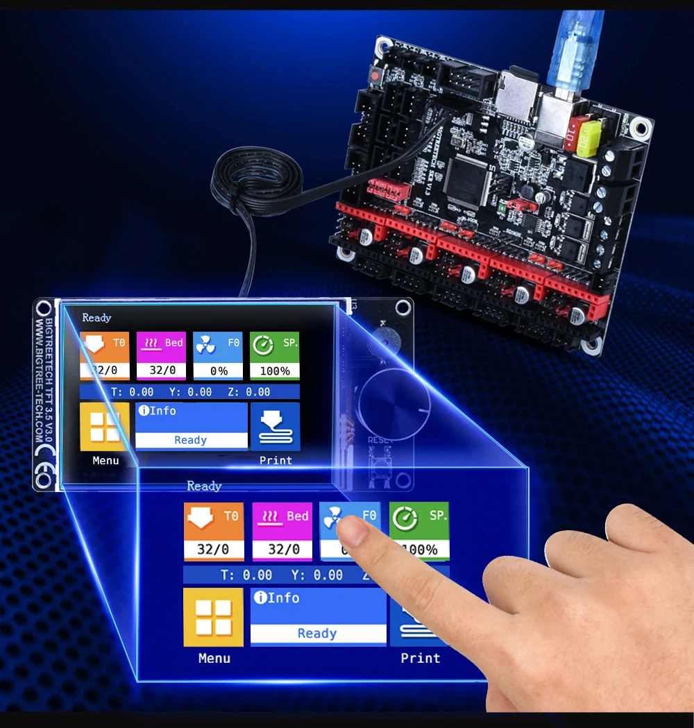 Доставка и доставка действительно быстрая, очень хорошо упакованы. Обработанный пролив из коробки, прекрасно дополняет SKR 1,4 Turbo. Сенсорный экран очень отзывчив, без определенной задержки. Из 3 доступных тем, мне нравится плоский «унифицированный материал меню» лучше, чем 2 других. :) Переключение между темами является простым (и вы можете настроить его по своему вкусу, если вы хотите). ЖК-симулятор работает так же хорошо, но мне кажется немного странным, что придется перейти в режим «touch», чтобы установить цвета ЖК-симулятора. Я думаю, что он должен быть настроен в ЖК-симуляторе. В любом случае, меню сенсорного экрана хорошо разложены. Будь то TFT или ЖК-режим, очень приятно использовать. Это даже немного «привыкание». :) Kudos!