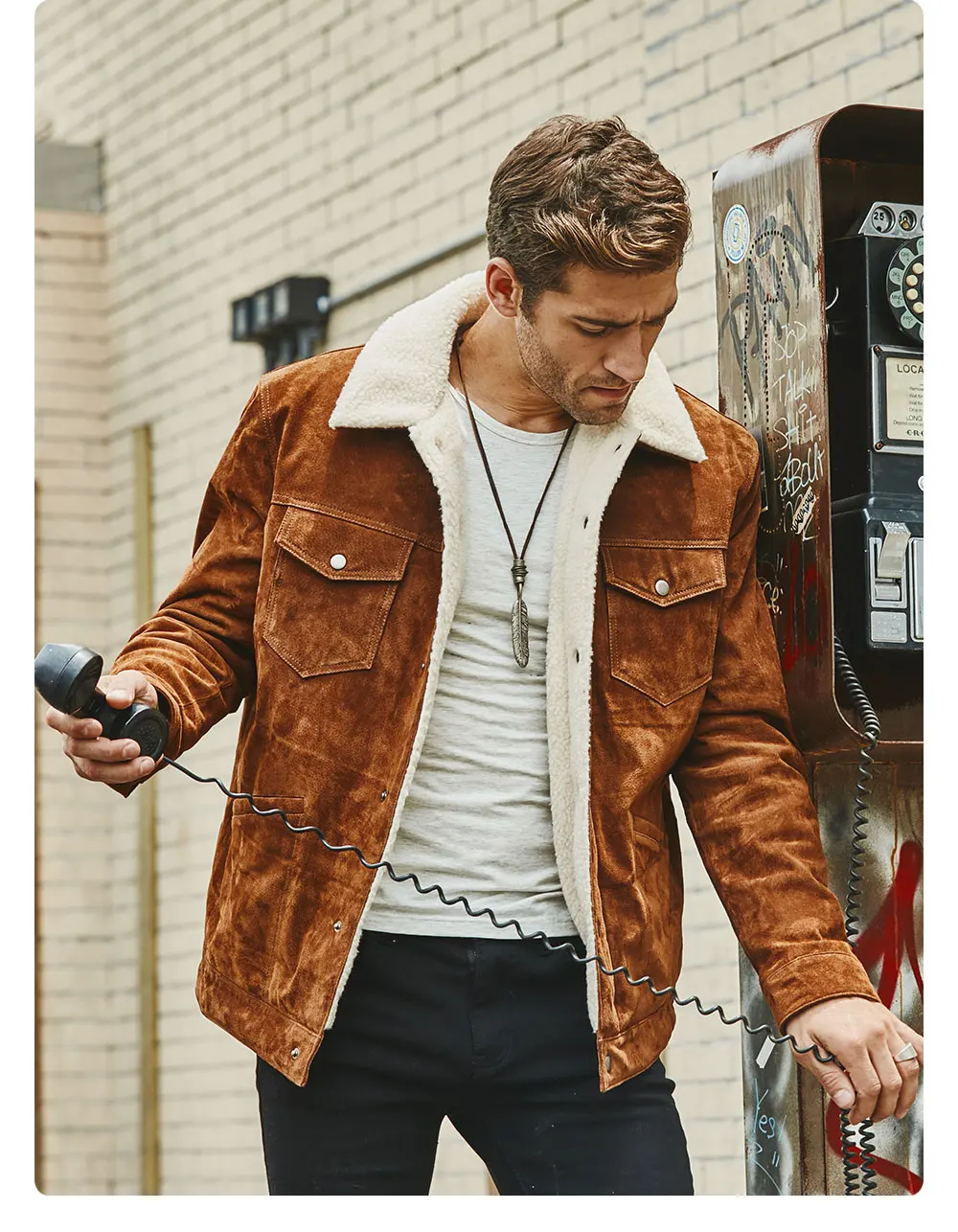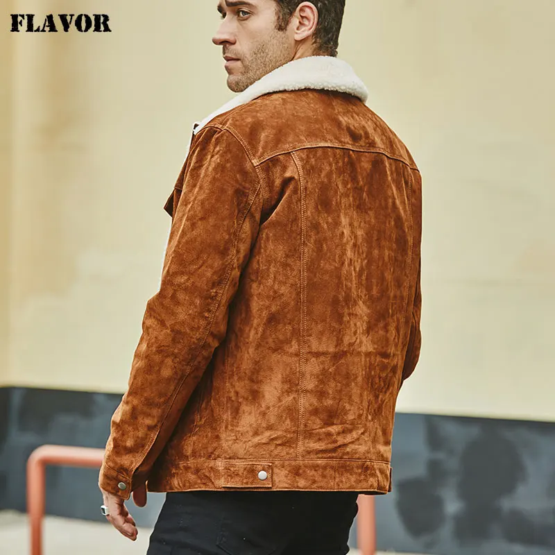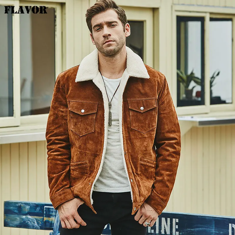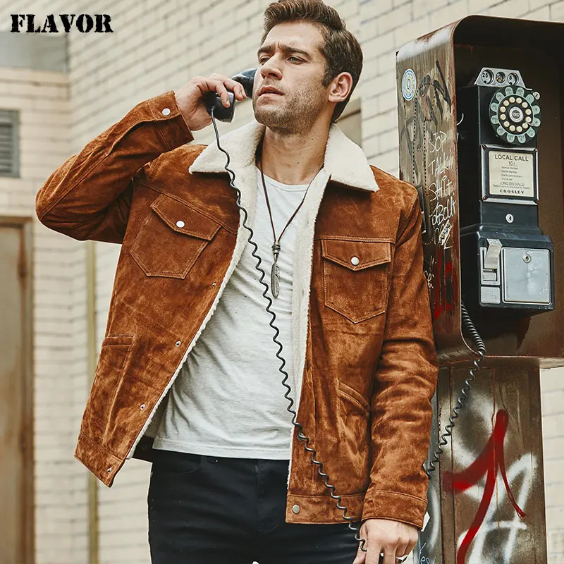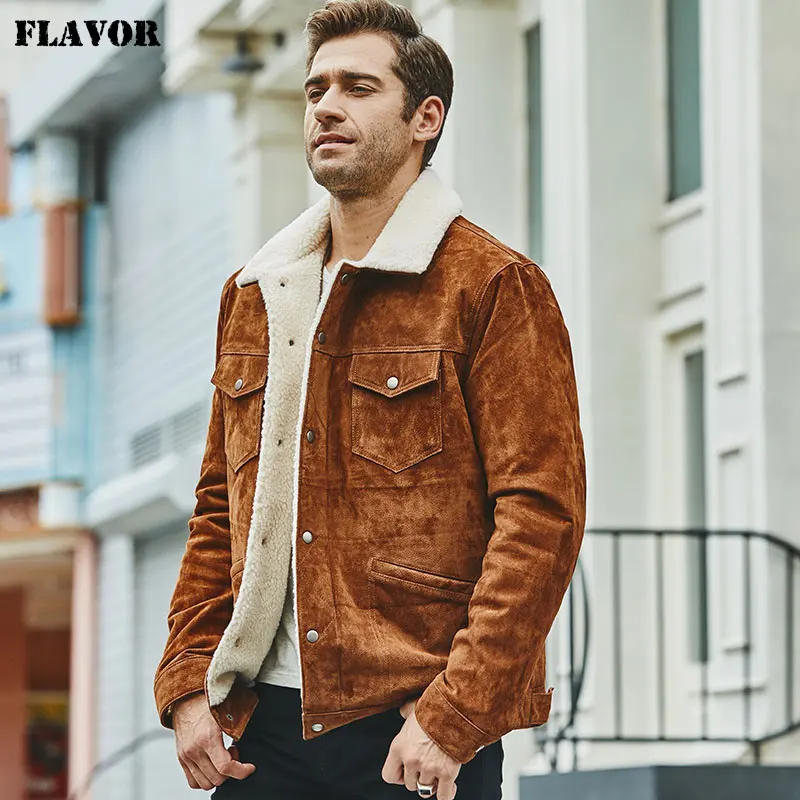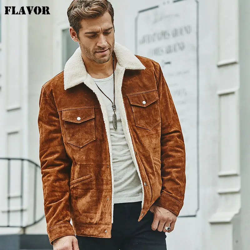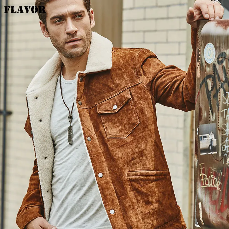 FLAVOR New Мужская куртка из натуральной кожи с искусственной овчиной, теплое пальто для мужчин