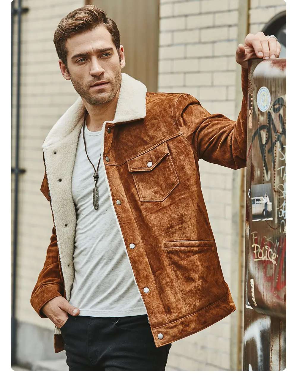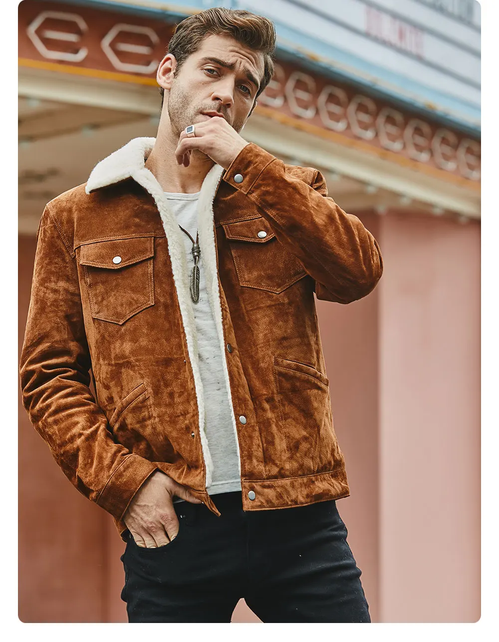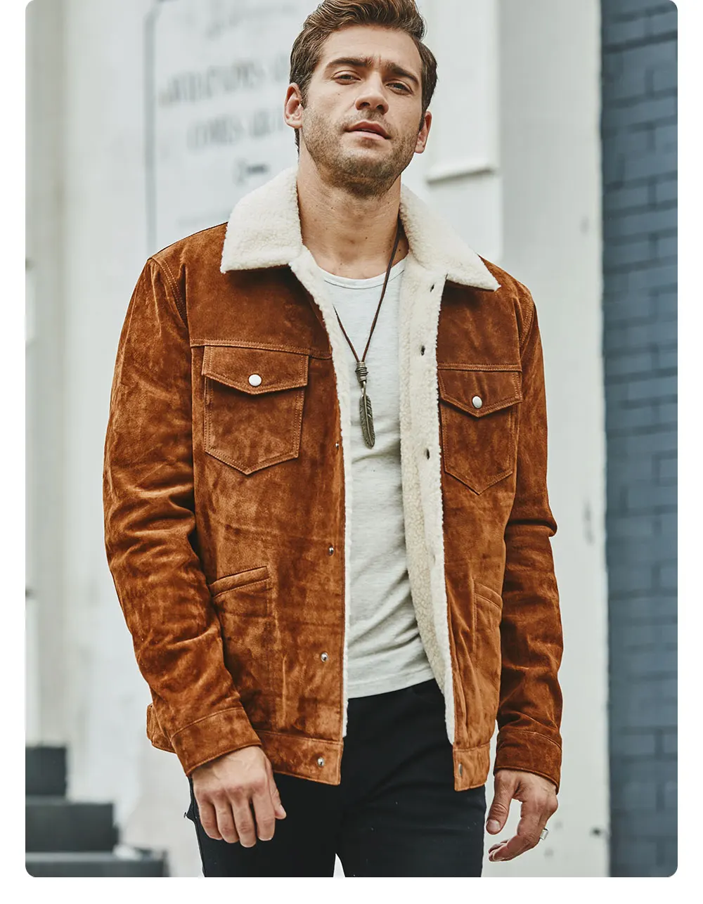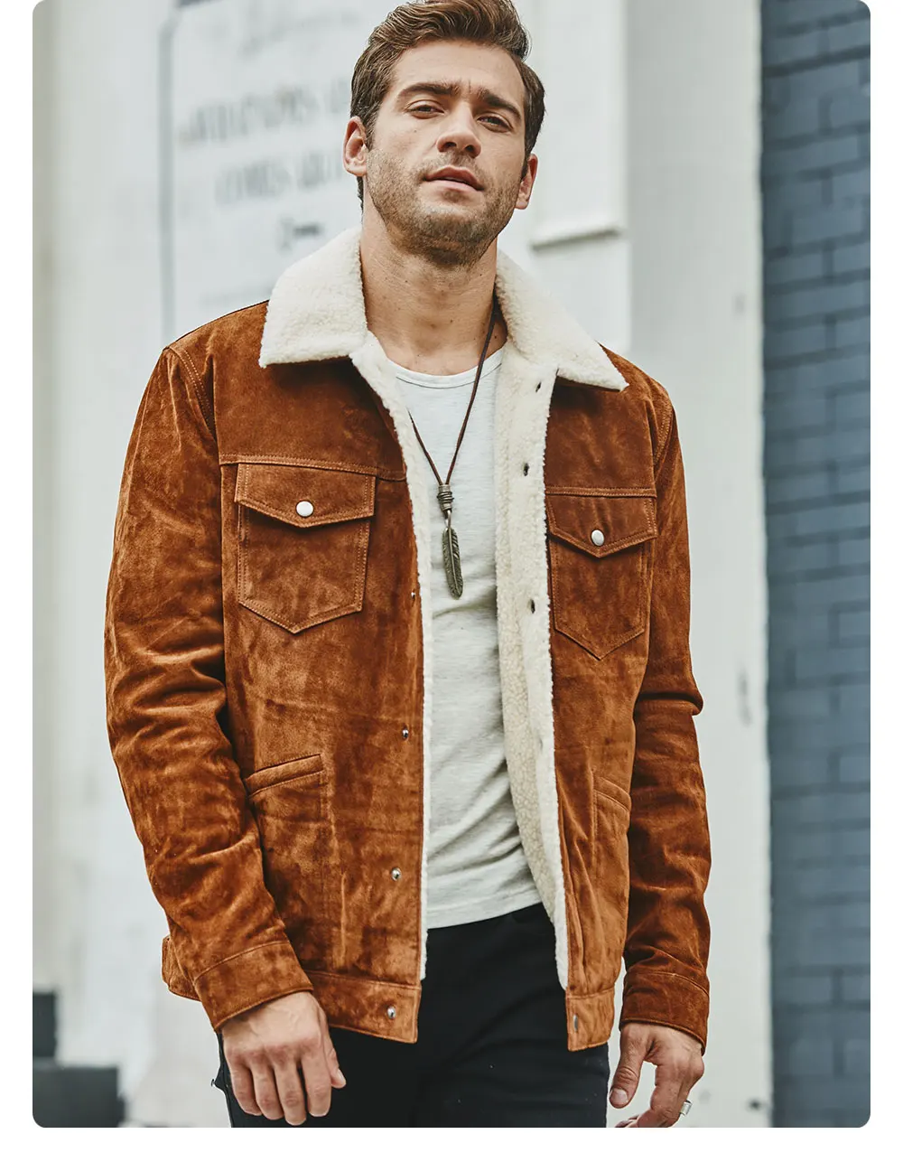 FLAVOR New Мужская куртка из натуральной кожи с искусственной овчиной, теплое пальто для мужчин