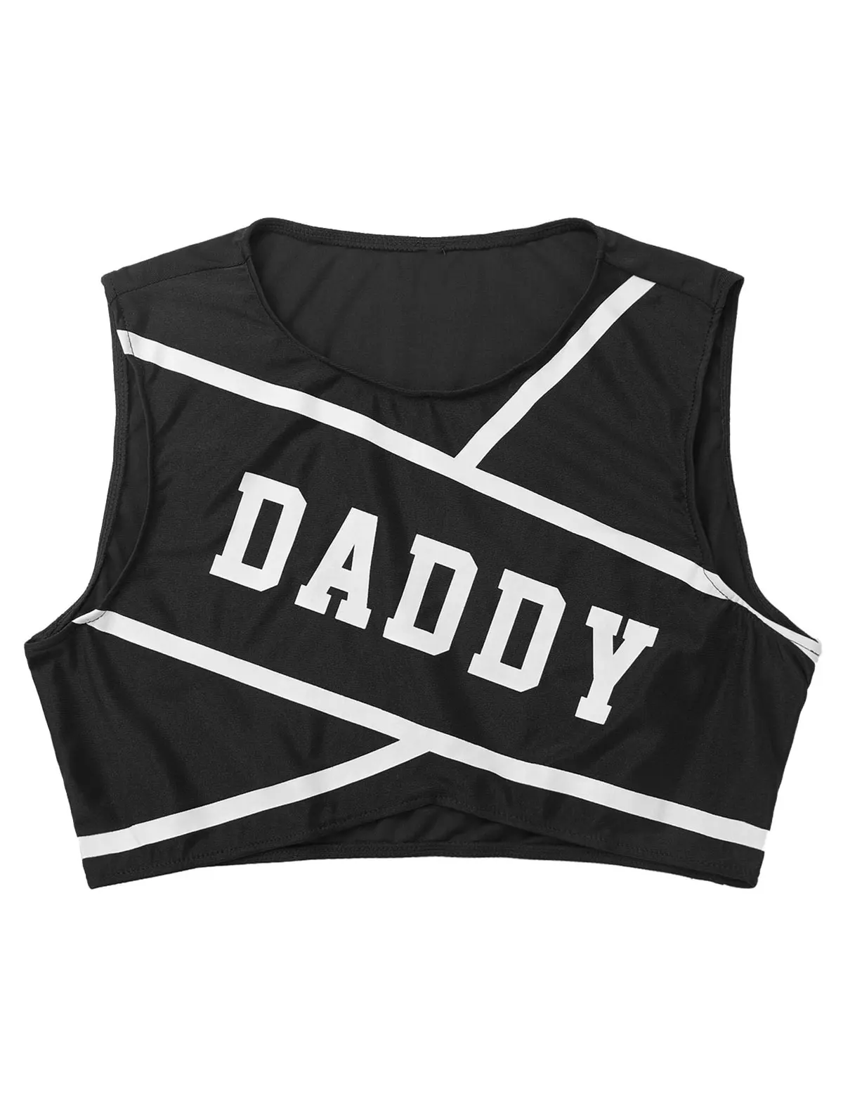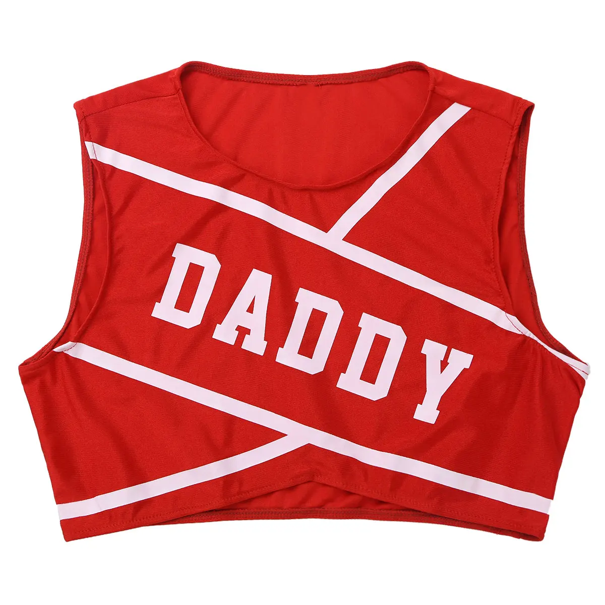 Особенности:Женский очаровательный костюм болельщика для костюмированной вечеринкиУкороченный топ без рукавов с круглым вырезом и надписью «DADDY» спереди; Эластичная плиссированная мини-юбка.Хорошая эластичная ткань, мягкая и удобная в носке, отлично подчеркивает ваши вечерние и спортивные мероприятия.Хороший выбор для нарядов, ролевых игр, сценических костюмов, карнавала, танцев, соревнований по танцам и т. д.Для получения подробной информации о размерах обратитесь к описанию товара. Ручная стирка в холодной воде.