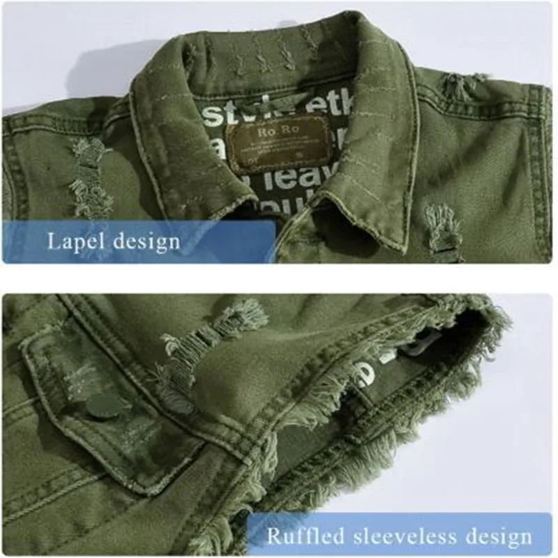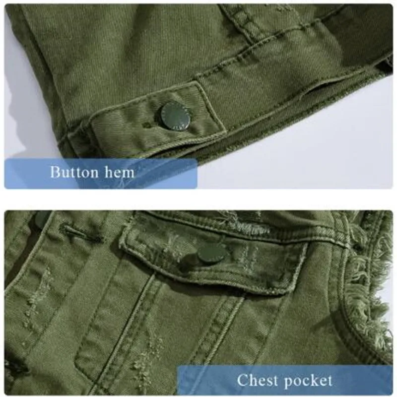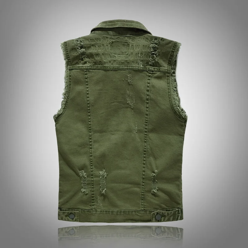 Жилеты, 2021, приталенный ковбойский мужской жилет, рваный джинсовый жилет, мужская куртка без рукавов, повседневный жилет, мужское джинсовое пальто, зеленое