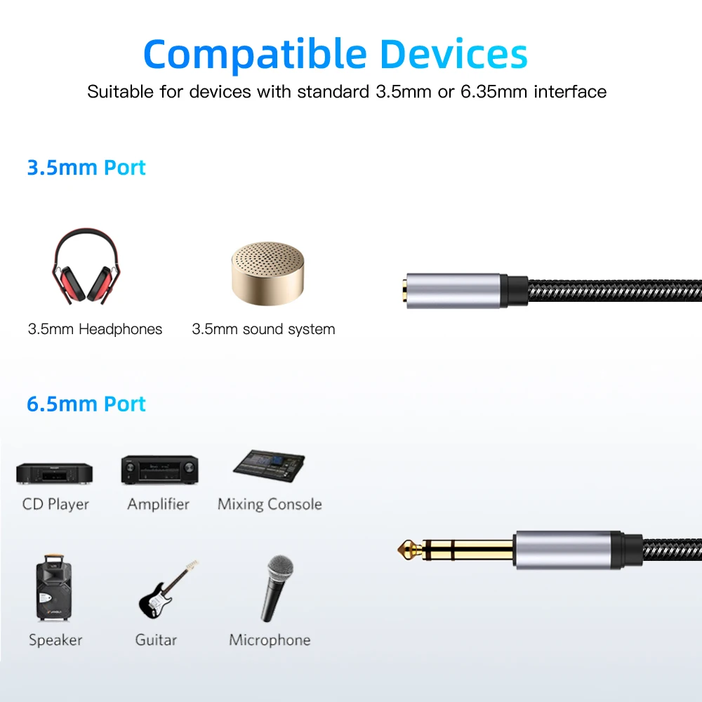 6,5 мм штекер до 3,5 мм гнездо Аудио AUX кабель гарнитура Микрофон гитара адаптер для записи Позолоченные 6,53,5 мм конвертер Aux кабель