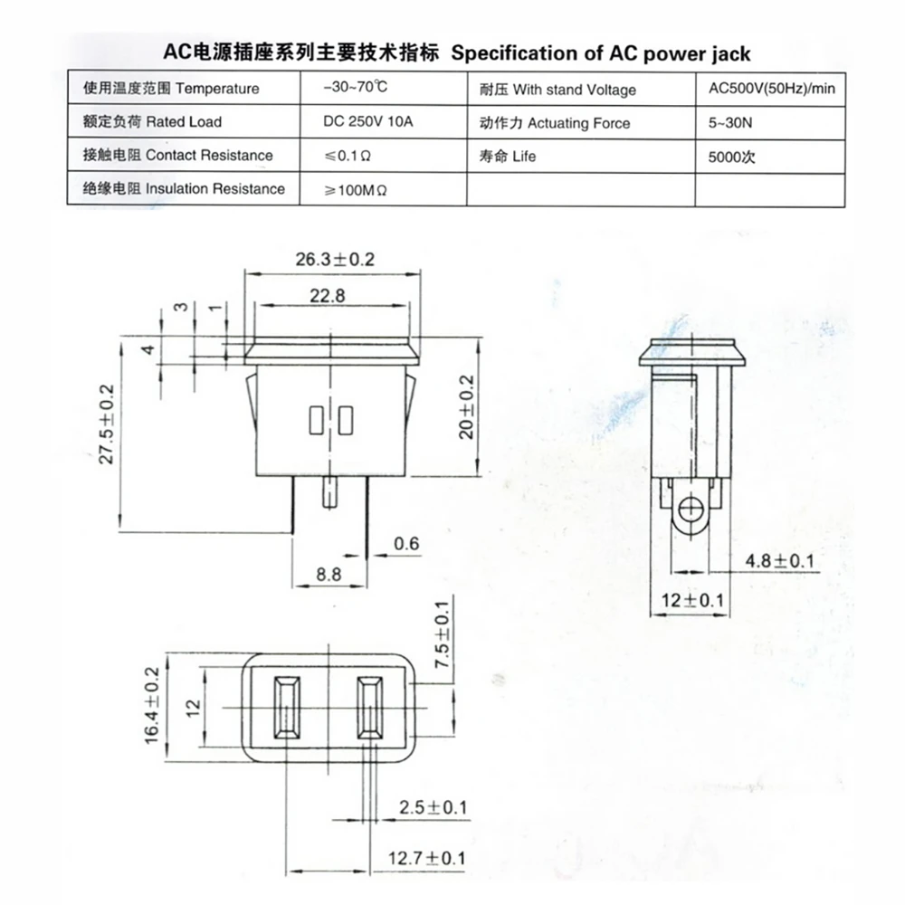 5 шт. AC 15A 125V 2 Pin US Plug Панель Крепление US розетка питания черный
