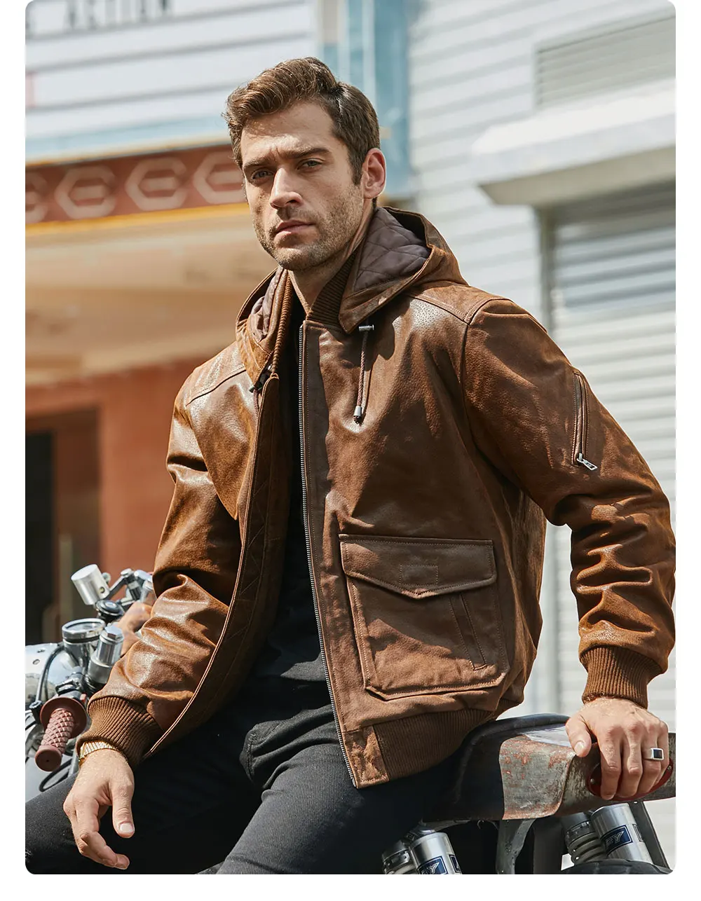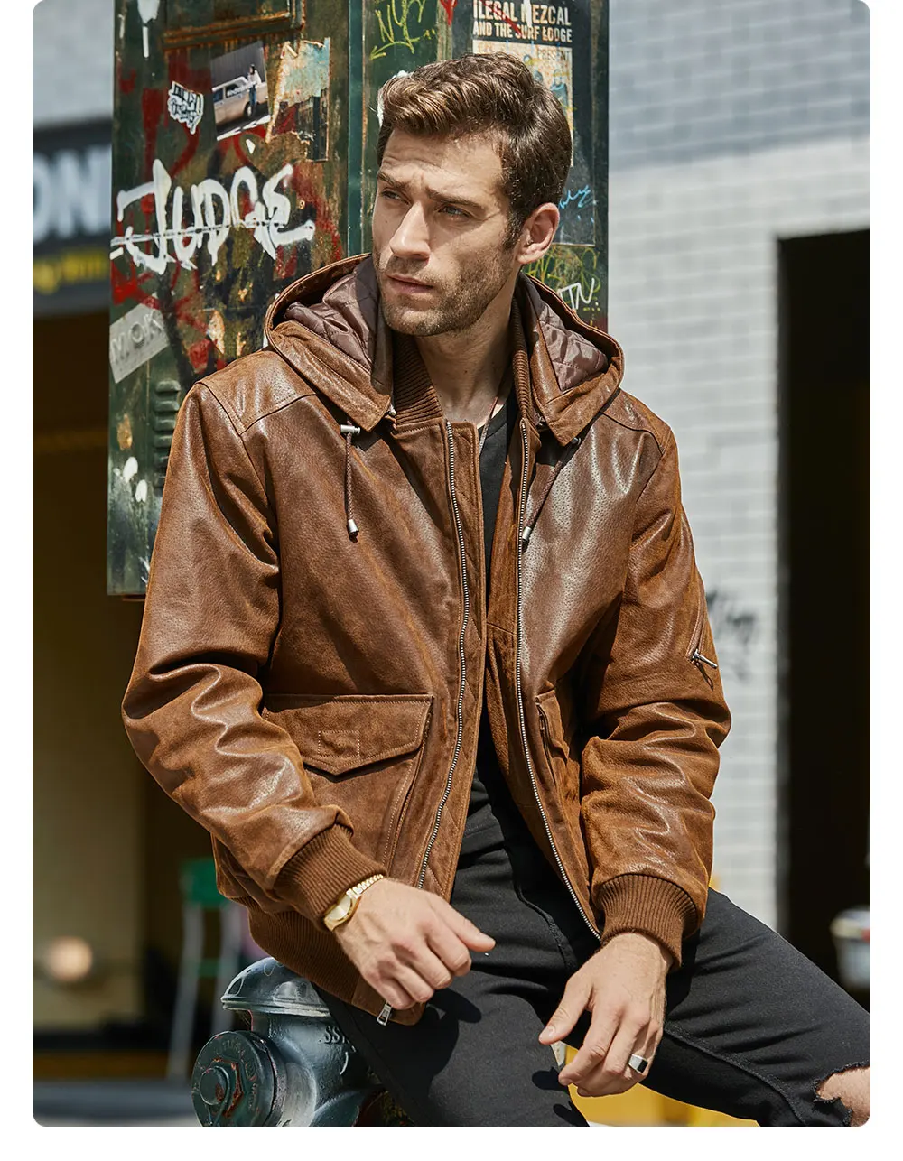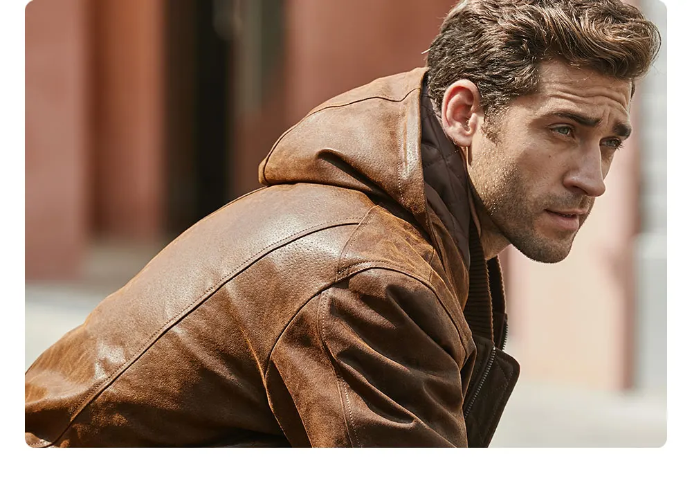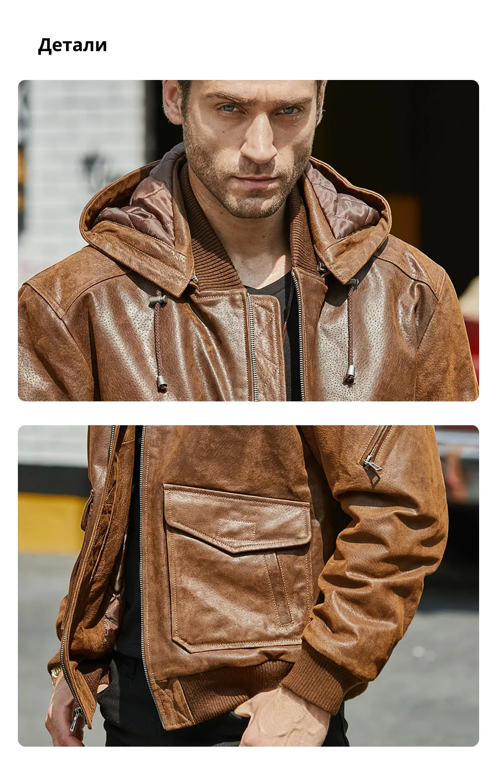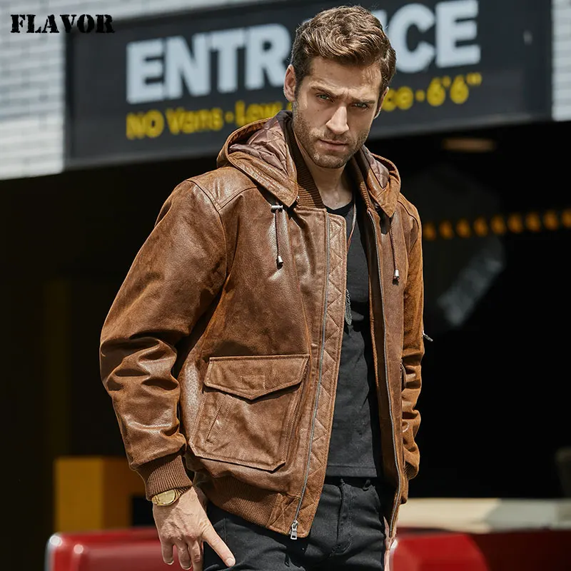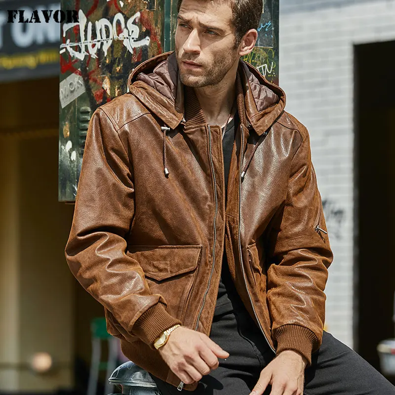 Новая мужская кожаная куртка, коричневая куртка из натуральной кожи со съемным капюшоном, теплая кожаная куртка для мужчин