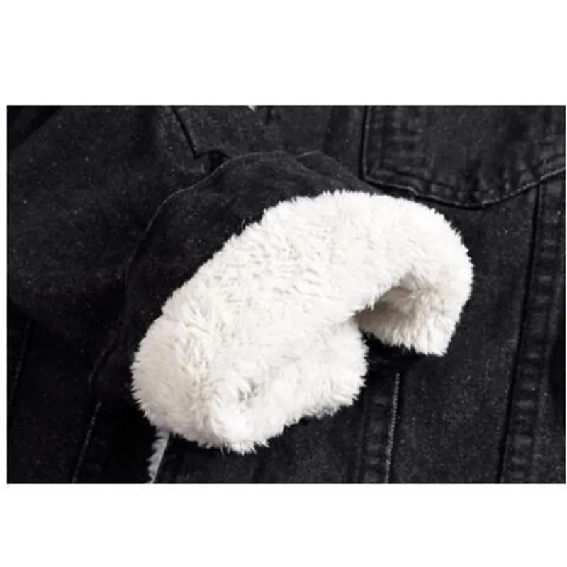 Зимние толстые бархатные джинсовые куртки, мужские теплые флисовые ...