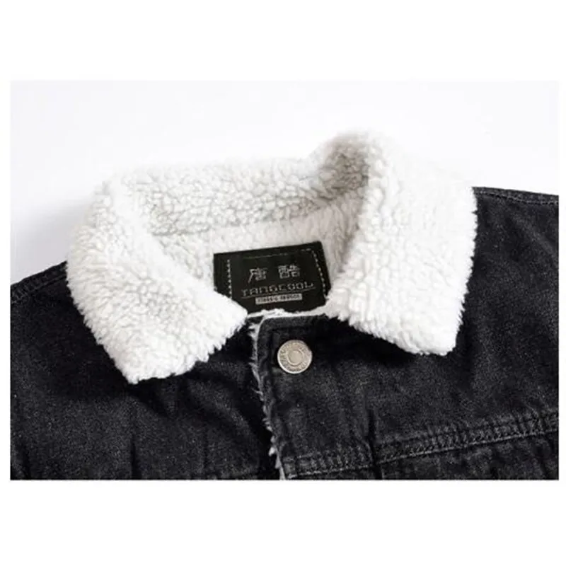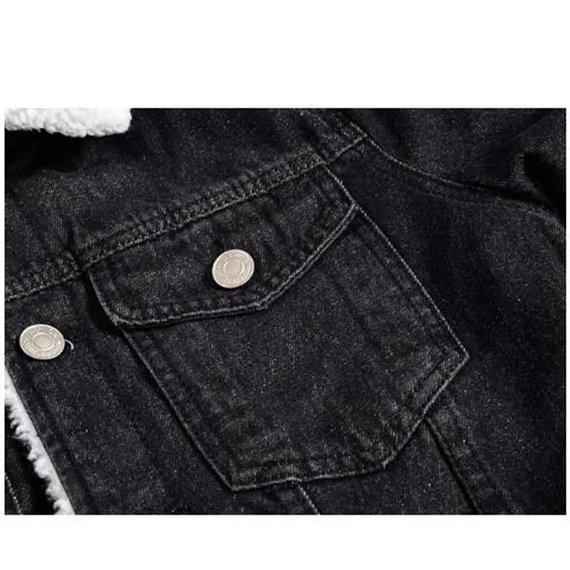 Зимняя мужская джинсовая куртка, теплое мужское флисовое пальто, бо...