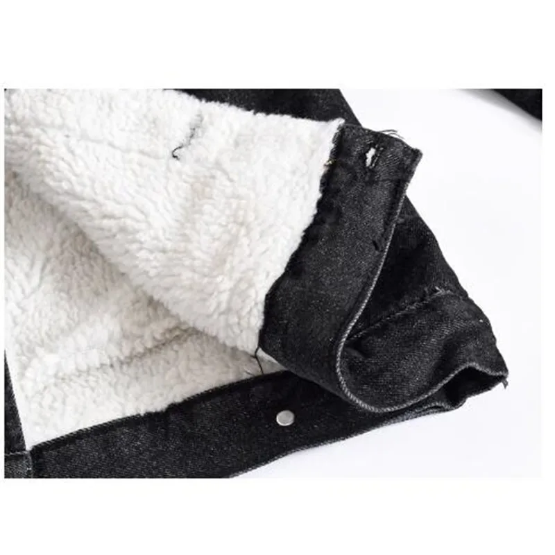 Модная зимняя джинсовая куртка, черное пальто большого размера из п...