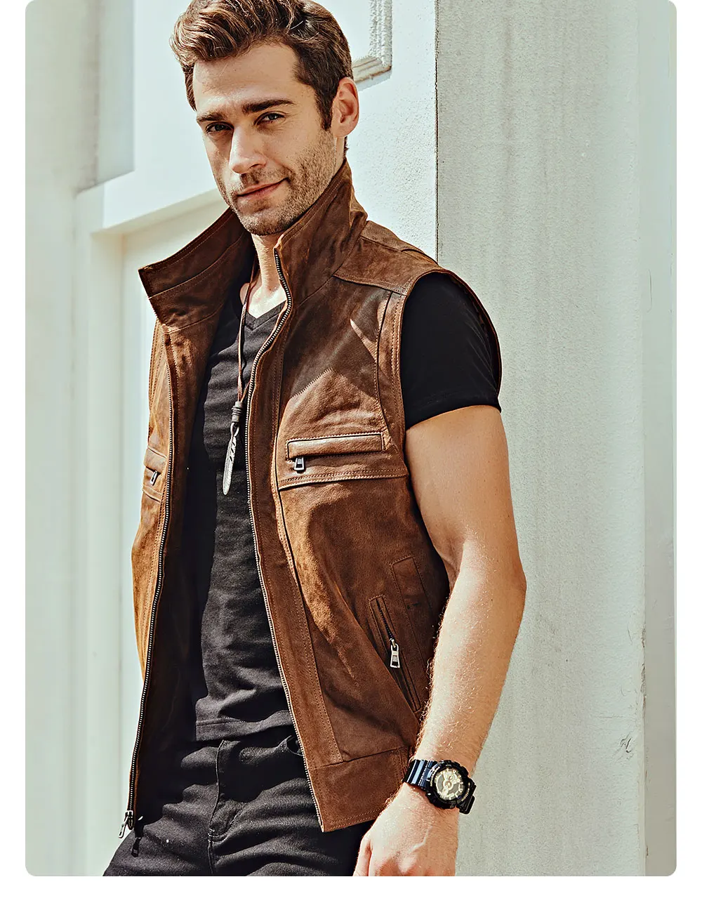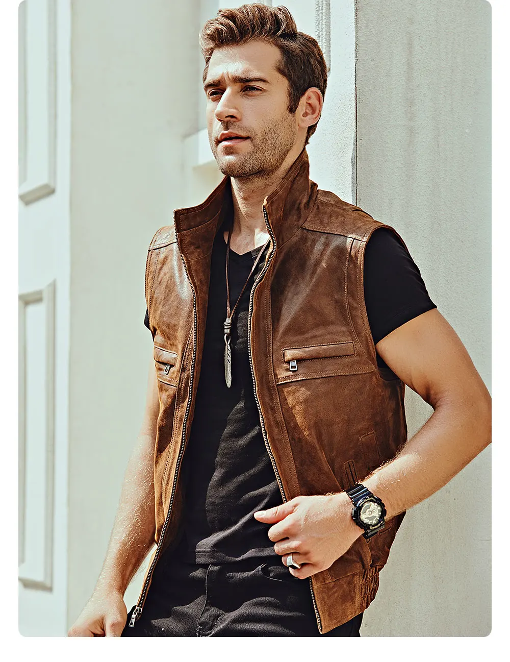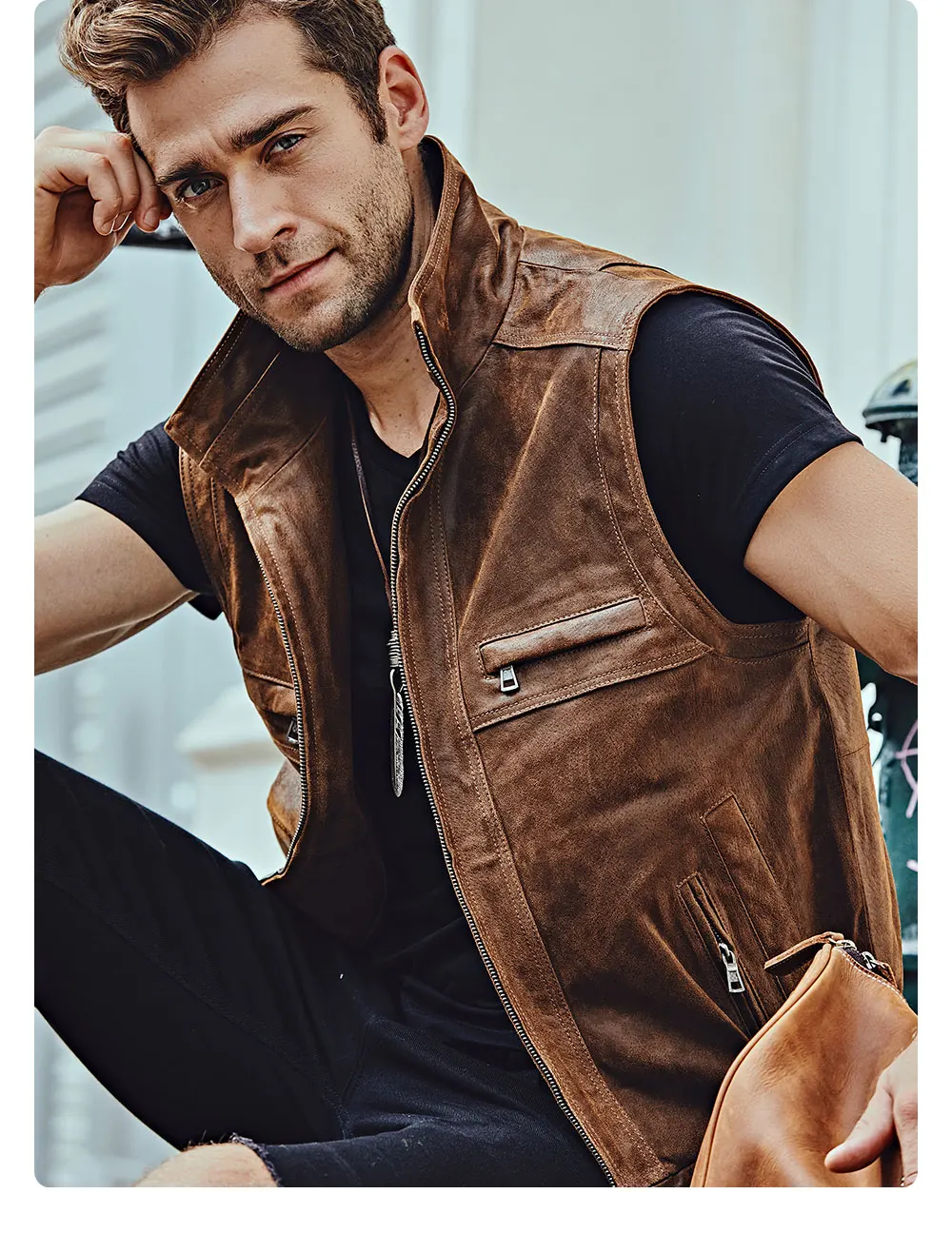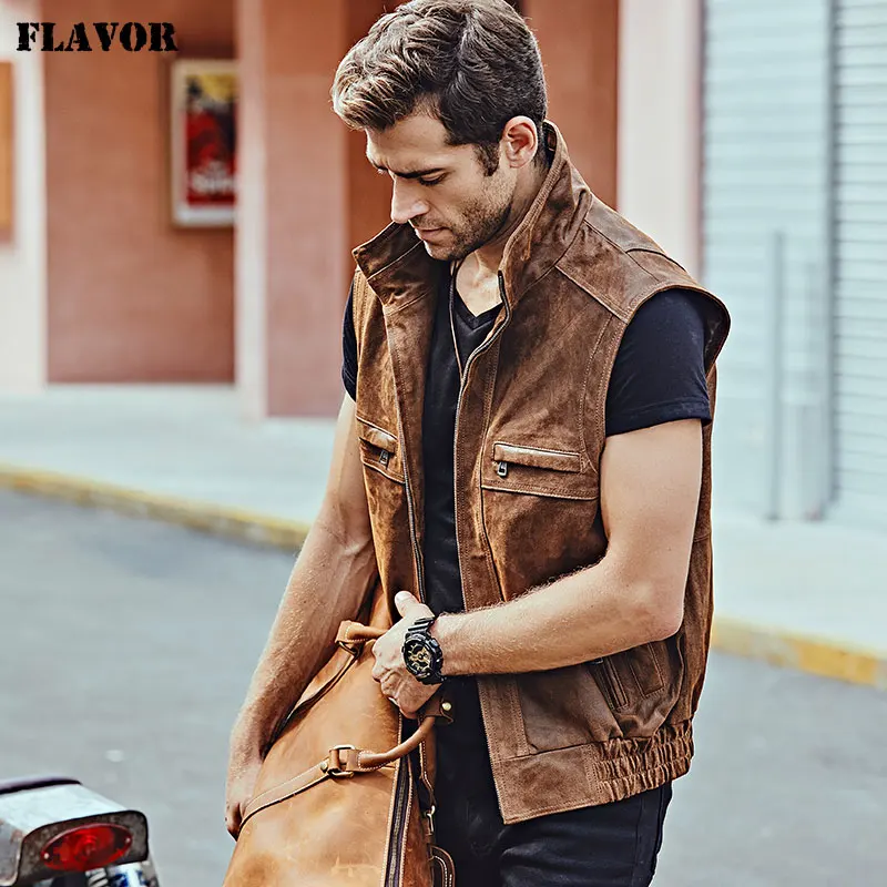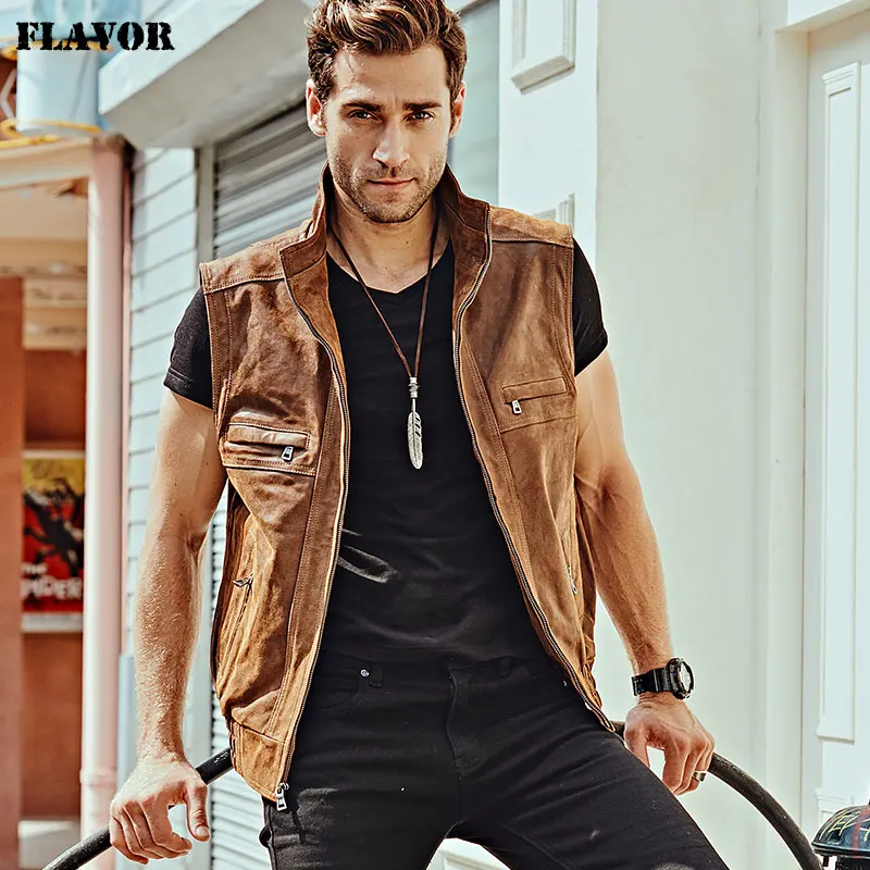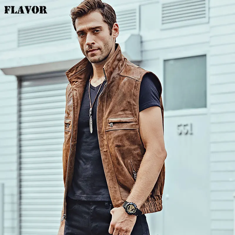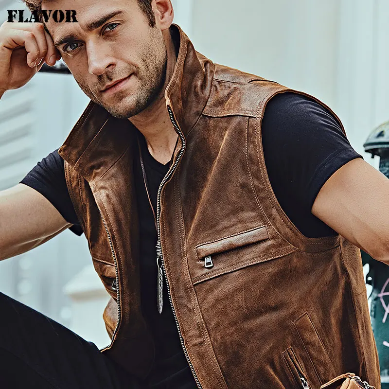 Мужской кожаный Ретро жилет Mew с воротником-стойкой, мужской мотоциклетный Повседневный жилет