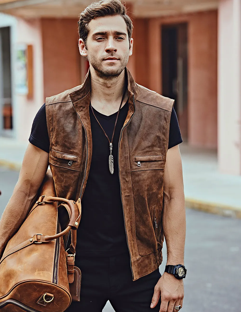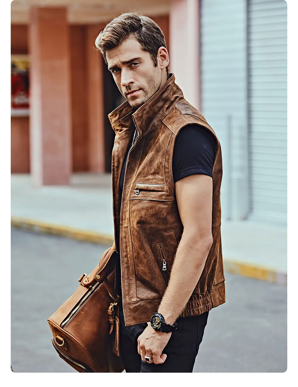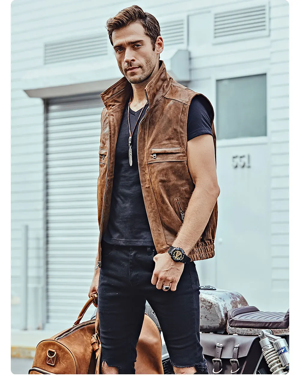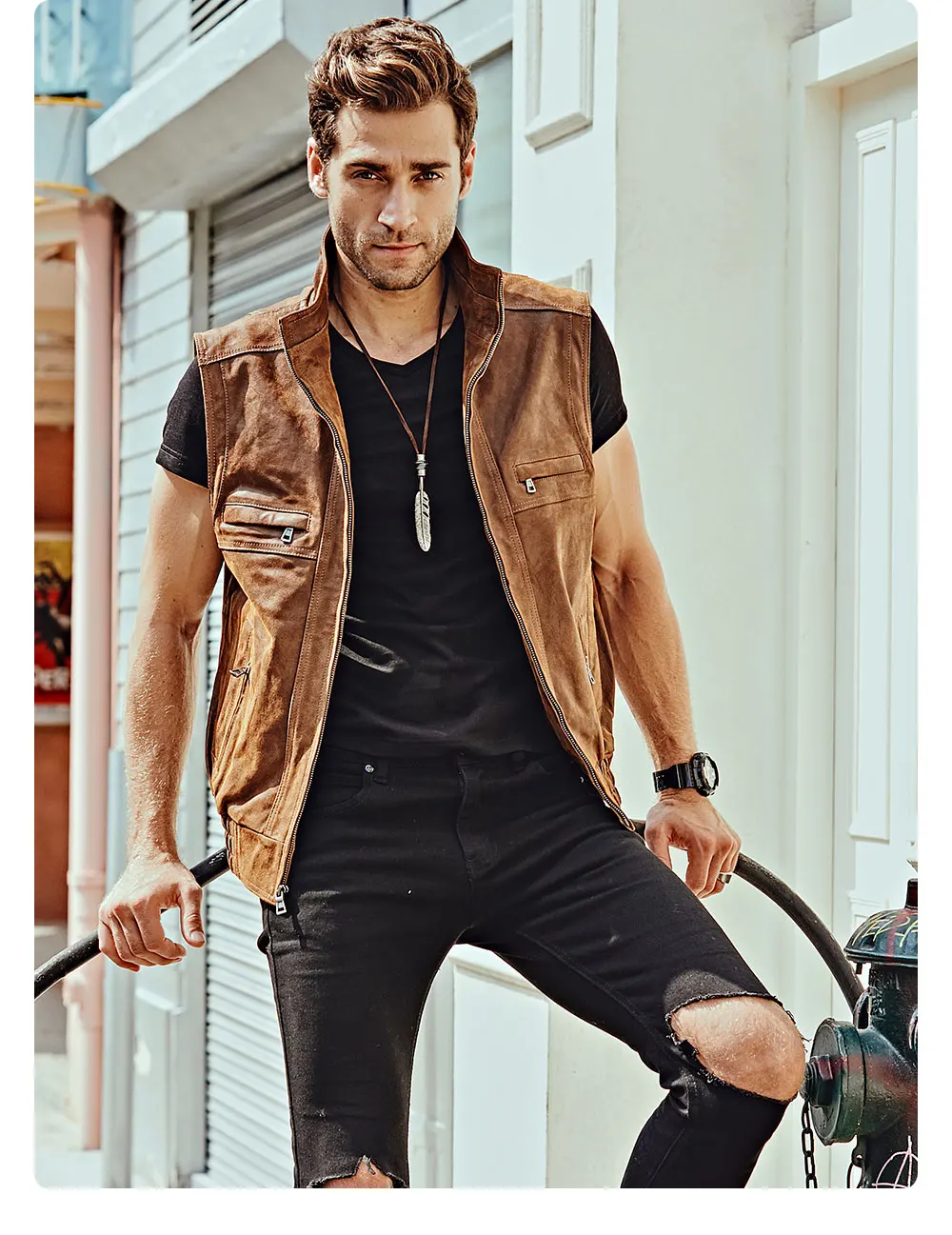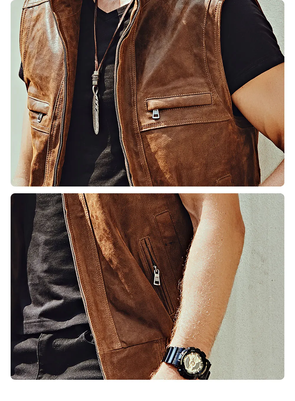 Мужской кожаный Ретро жилет Mew с воротником-стойкой, мужской мотоциклетный Повседневный жилет