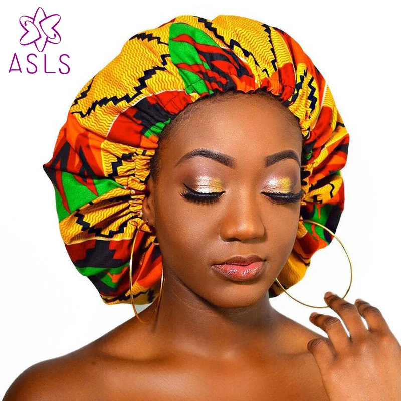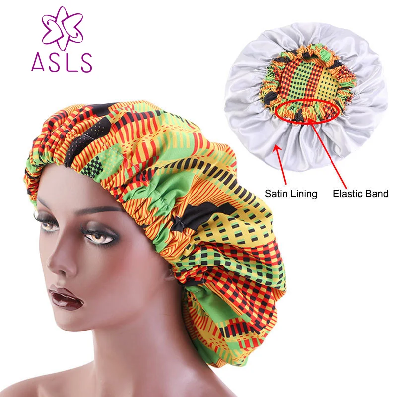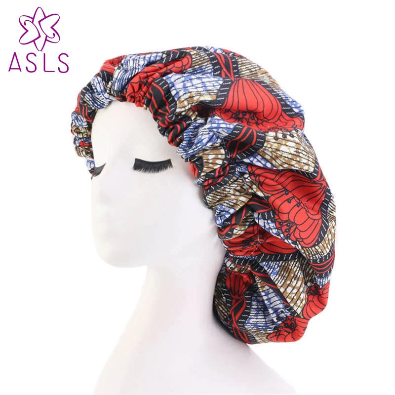 Новые очень большие Сатиновые чапсы на подкладке, двухслойные женские тканевые чапсы с Африканским рисунком, головной убор для сна в ночное время, аксессуары для волос