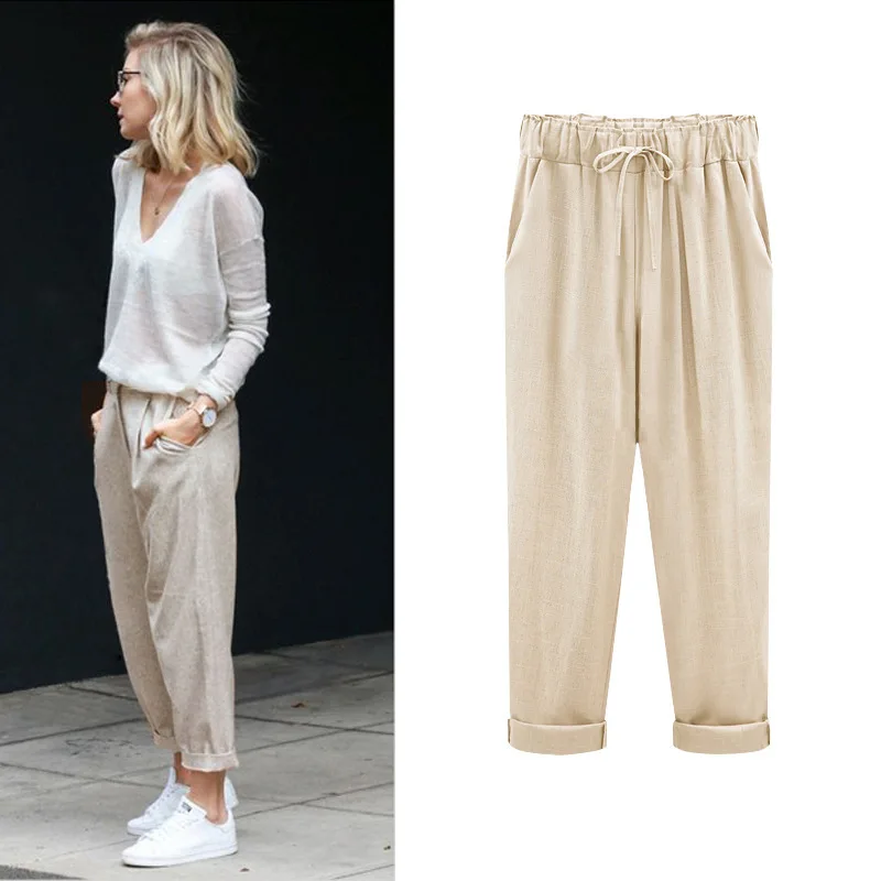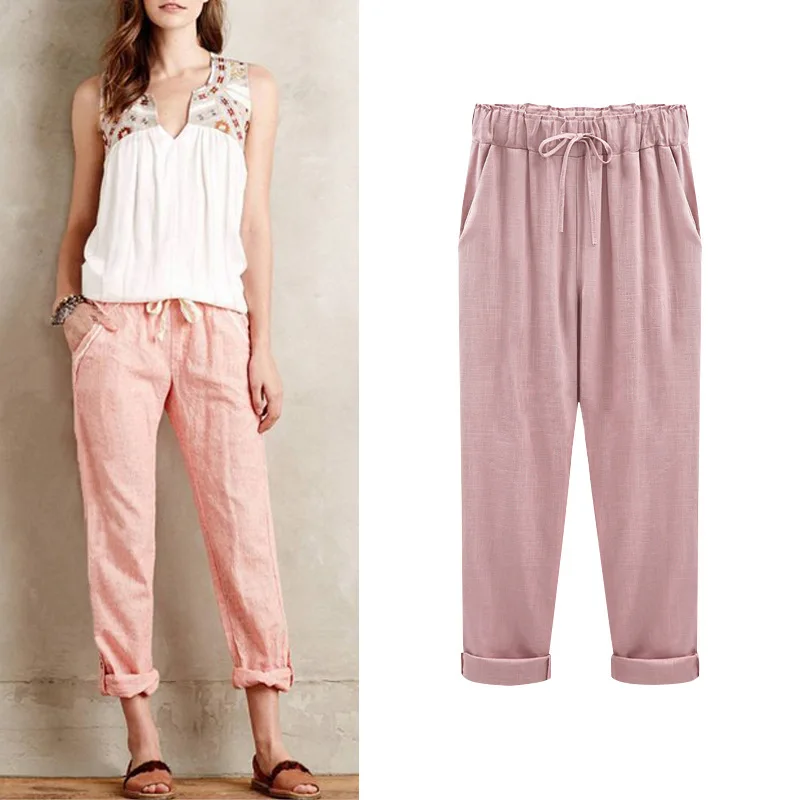 Женские льняные брюки YSDNCHI с карманами, хлопковые однотонные повседневные брюки, женские свободные шаровары