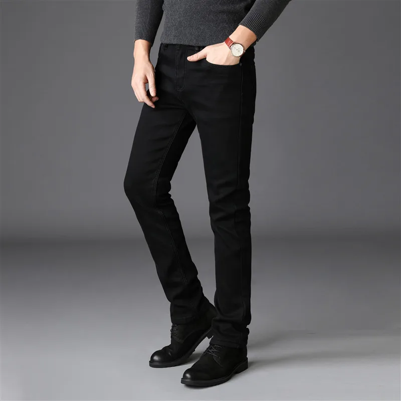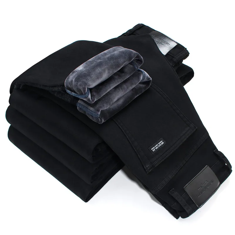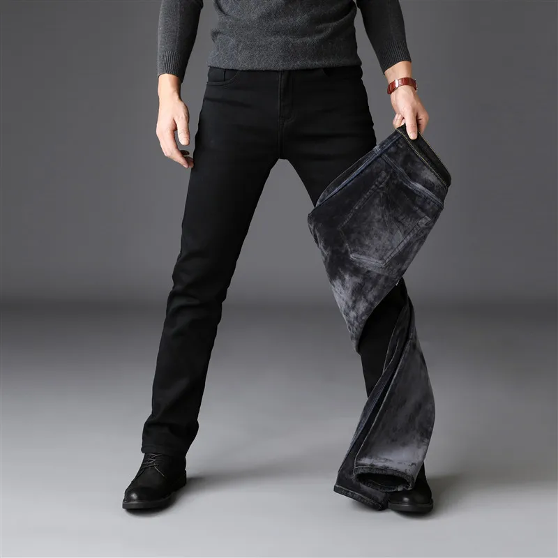 Зимние мужские новые деловые повседневные толстые бархатные теплые флисовые прямые джинсы черные хлопковые мягкие облегающие джинсовые брюки 10000 28 42
