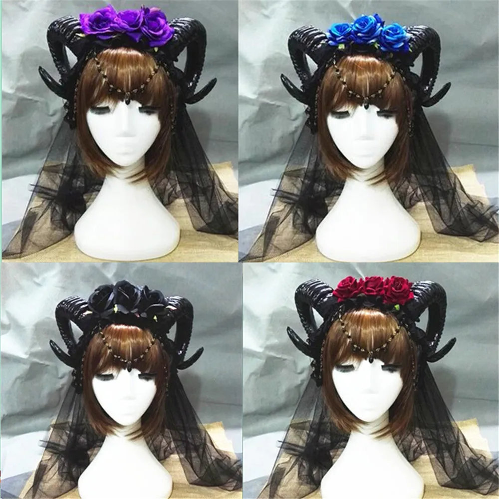 Три искусственных кружева для Хэллоуина Пурим Карнавал косплей Лолита Фата аксессуары для волос Готический призрак головной убор