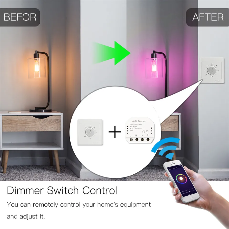 Умный переключатель Wi-Fi, модуль выключателя светильник, светодиодный диммер, RF, беспроводной голосовой пульт дистанционного управления, умное приложение светильник вая лампа, 1 двухсторонний переключатель