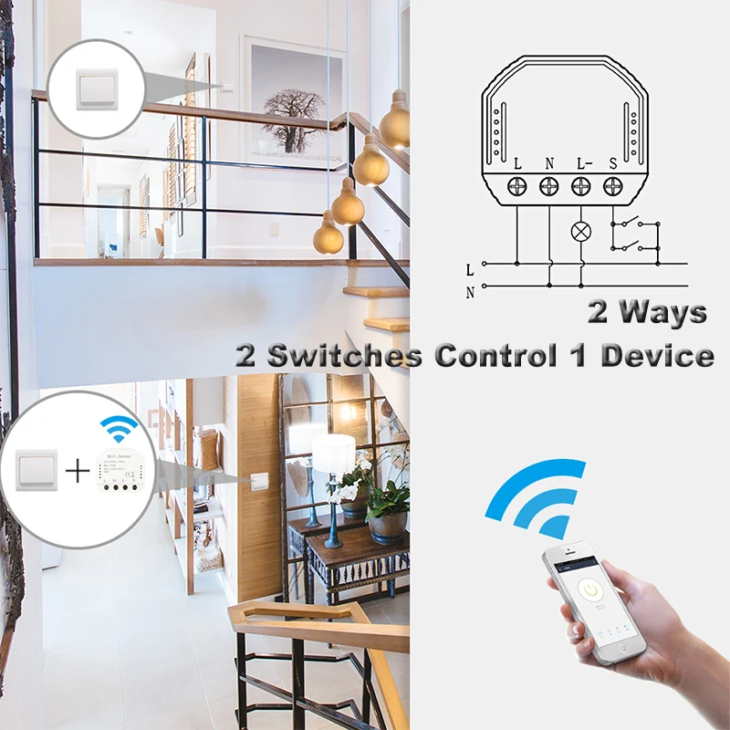 [Умный переключатель]Легко сделать Ваш традиционный переключатель умным, работоспособным для 2way switch. Подходит для выключателя ЕС/Великобритании.