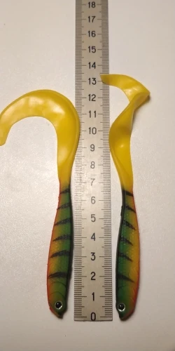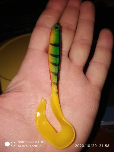 Хорошая приманка, приятное плавание, но очень тонкий хвост кажется хрупким. Чтобы увидеть вовремя.