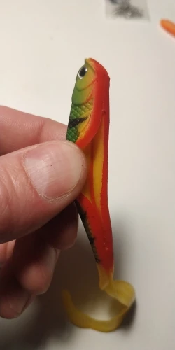 Всё в точности, как в описании. Изготовлены качественно, материал весьма эластичный, в воде хвостом виляет бодро. Краска держится хорошо, стирается если ногтем несколько раз скоблить. Отправка и доставка без нареканий, в СПб всё доехало достаточно быстро вместе с другими заказами. Трек отслеживался. Своих денег однозначно стоят, к покупке рекомендую.