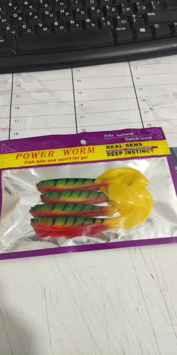 резина на вид, цвет, запах, и качество не плохая, разловить бы да потом советовать, ну я думаю щучька заинтересуется ею, так что всё таки советую прикупить.